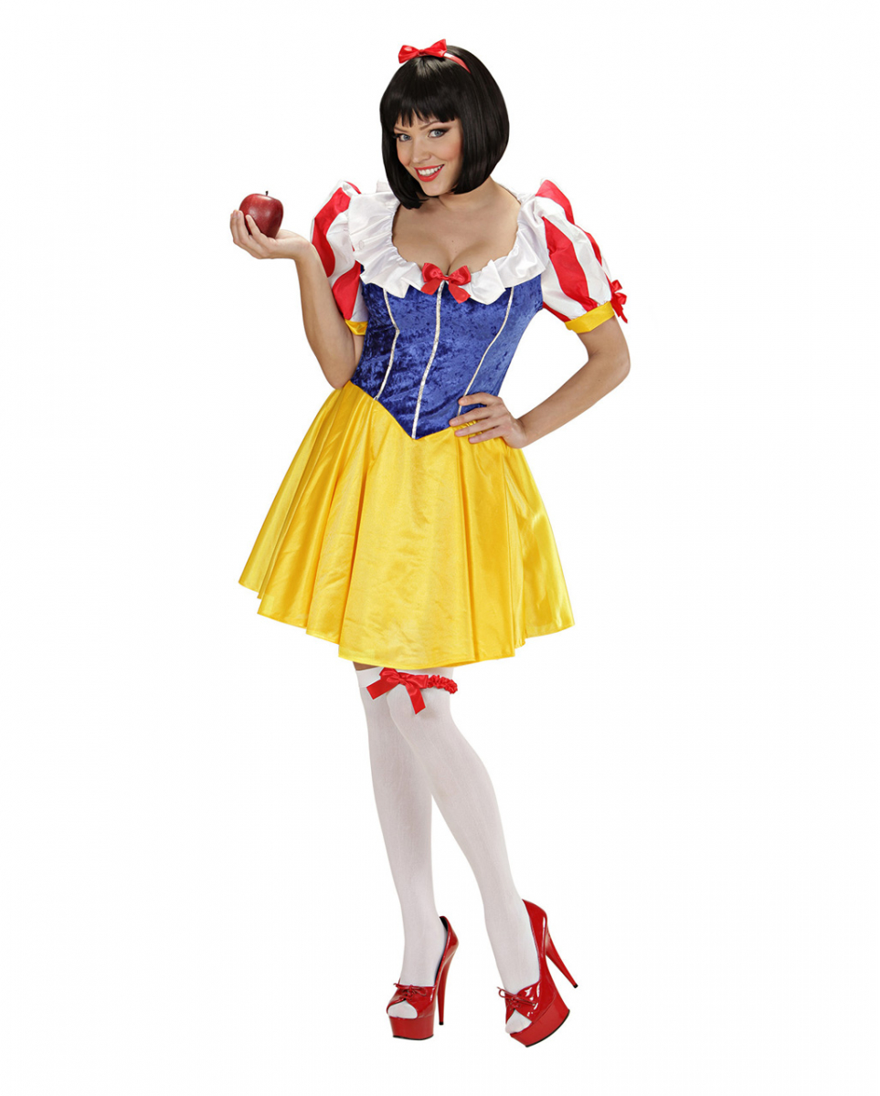 Schneewittchen Kostüm mit Haarschleife und Strumpfband Dreiteiliges Märchenkostüm für dein Auftritt als Snow White Kostümiere dich jetzt als klassische Märchenfigur aus der Welt der Sagen und Märchenwelt. Das wunderschöne Schneewittchen, soll dem Märchen nach, von der bösen Königin aus Eifersucht getötet werden. Auf der Flucht vor der bösen Herrscherin findet Schneewittchen Unterschlupf bei den sieben Zwergen. Als Schneewittchen verkleidet findest du im Fasching und Karneval bestimmt deinen Märchenprinzen. Das Sexy Schneewittchen Kostüm hat ein blaues, miederartiges Samtoberteil, dessen Ausschnitt von gerüschtem, weißem Stoff umrahmt ist. Das klassische Karnevalskostüm hat Puffärmel aus rot-/weiß gestreiftem Stoff und einen glockigen gelben, sexy-kurzen Rock. Komplettiert wird das freche Schneewittchen Kostüm durch das rote Haarband mit Schleifchen und einem rot-/weißen Strumpfband mit Schleifchen. Lieferumfang: 1 x 3-tlg. Schneewittchen Kostüm Inhalt: Kleid, Haarschleife, Strumpfband Farbe: Blau/Gelb/Weiß/Rot Größe: S, M, L, XL Material: 100% Polyester Schneewittchen Perücke extra erhältlich Strümpfe und Schuhe nicht inkl. Größe XS 30/32 S 34/36 M 38/40 L 42/44 XL 46/48 XXL 50/52