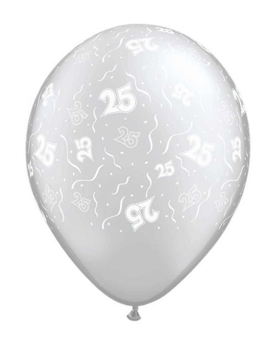 5er Pack 25 Jahre Luftballons für Geburtstag und Silberhochzeit Latexballons als elegante Party Dekoration Mit dem 5er Pack 25 Jahre Luftballons für Geburtstag und Silberhochzeit kannst du edel und festlich dekorieren. Die Luftballons mit Jubiläumszahl 25 sind eine geniale Party-Deko mit stilvollem Design. Das 5er Pack 25 Jahre Luftballons für Geburtstag und Silberhochzeit sind eine elegante Festtags Dekoration mit Aufdruck. Auch für Firmenjubiläen sind die Ballons perfekt geeignet. Sie sind jeweils ca. 30 cm groß. Lieferumfang: 1x 5er Pack 25 Jahre Luftballons für Geburtstag und Silberhochzeit Inhalt: 5 Stück Farbe: Silber/Weiß Größe: ca. 30cm Material: Naturkautschuklatex Luftballons sind nicht für Kinder unter 6 Jahren geeignet und erfordern immer die Aufsicht von Erwachsenen. Von den Augen fernhalten. Die Anwendung einer Ballonpumpe wird empfohlen. Beim Verschlucken unaufgeblasener Luftballons besteht Erstickungsgefahr. Geplatzte Luftballons sind unverzüglich zu entfernen.