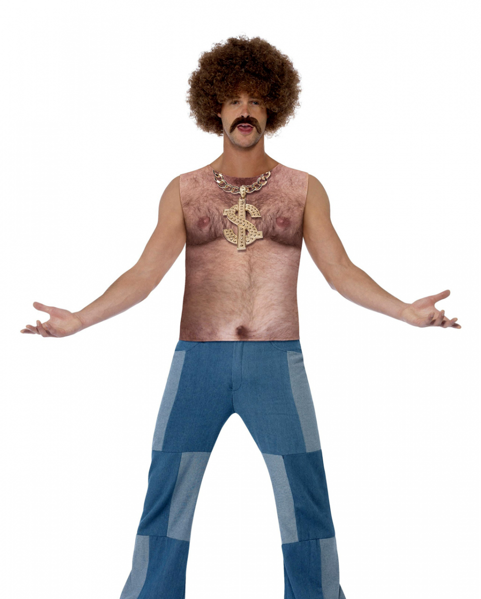 70er Jahre Muskelshirt für Männer Siebziger Shirt mit haarigem Burst-Audruck In dir schlummert der wahre Tanzflächenking, das Herz der Seventies? Dann hast du mit dem 70er Jahre Muskelshirt für Männer das ideale Oberteil gefunden. Das 70er Jahre Muskelshirt für Männer ist ein funny Oberteil, um auf Motto- und Karenvalspartys für Aufsehen zu sorgen. Der Aufdruck auf der Vorderseite imitiert einen haarigen Oberkörper inkl. Goldkettchen im besten Stil der Siebziger. Lieferumfang: 1 x 70er Jahre Muskelshirt für Männer Farbe: hautfarben Größen: M, L Material: 100% Polyster Hose und Schuhe sind nicht im Lieferumfang enthalten Kultiges 70er Jahre Muskelshirt für Mottopartys Größe M L Brustumfang ca. 97-102 cm ca. 107-112 cm Taillenumfang ca. 81-86 cm ca. 91-97 cm Schrittlänge (Innen) ca. 83 cm ca. 84 cm   Achtung: Der Artikel ist ein Kostüm für Erwachsene und ist kein Spielzeug. Nicht für Kinder unter 3 Jahren geeignet. Kann Kleinteile enthalten die verschluckt werden können – Erstickungsgefahr. Von Feuer und offenen Flammen fernhalten.
