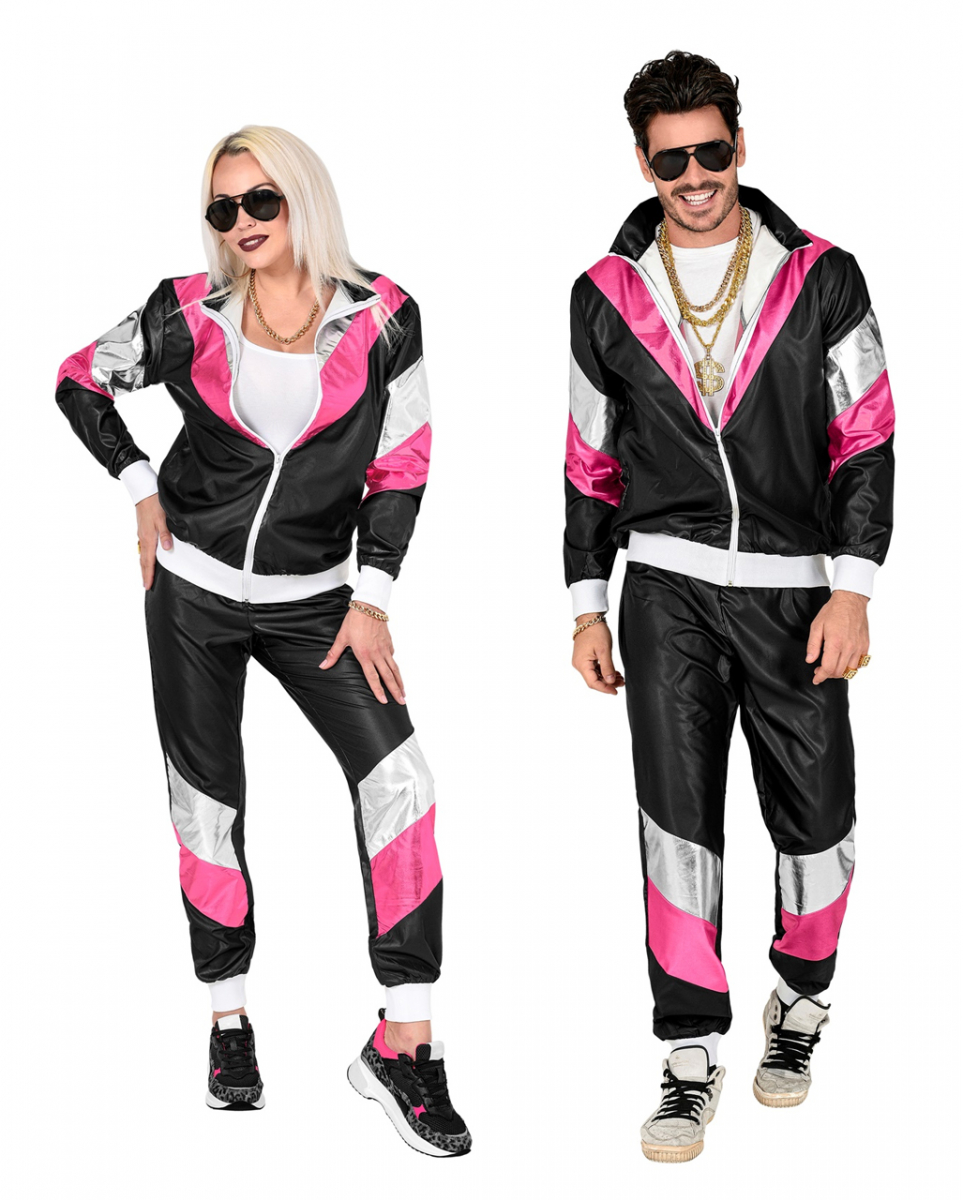 80er Jahre Trainingsanzug im Retro Look Unisex Sportanzug für Fasching und schrille 80’s Mottopartys Mit dem kultigen 80er Jahre Trainingsanzug im Retro Look bist du ideal für Fasching, Karneval und Après-Ski gerüstet. Was gibt es Besseres als in einem schrägen Jogging oder Trainingsanzug der 80’s auf der Tanzfläche und Skipiste abzufeiern! Der 80er Jahre Trainingsanzug im Retro Look ist Unisex und passt allen Geschlechtern. Mit der Farbgestaltung in Schwarz-Pink und Silber passt dieser perfekt in das Zeitalter von Disco, Schlager und fröhlicher Popmusik. Zweiteilig, bestehend aus Oberteil mit Reißverschluss und Hose mit Gummizug, lässt sich Trainingsanzug schnell und einfach an- und ausziehen. Lieferumfang: 1 x 80er Jahre Trainingsanzug im Retro Look Inhalt: 1 x Oberteil, 1 x Hose Farbe: Schwarz, Pink, Silber, Weiß Größe: S, M, L, XL, 2XL Material: 100% Polyester Unisex, passt allen Geschlechtern Vielseitig verwendbar Oberteil mit Reißverschluss Größe S 48 M 50 L 52 XL 54 2XL 56 3XL 58 Der Artikel ist ein Kostüm für Erwachsene und kein Spielzeug. Nicht für Kinder unter 3 Jahren geeignet. Kann Kleinteile enthalten, die verschluckt werden könnten. Es besteht dadurch dann Erstickungsgefahr. Von Feuer und Flamme fernhalten.