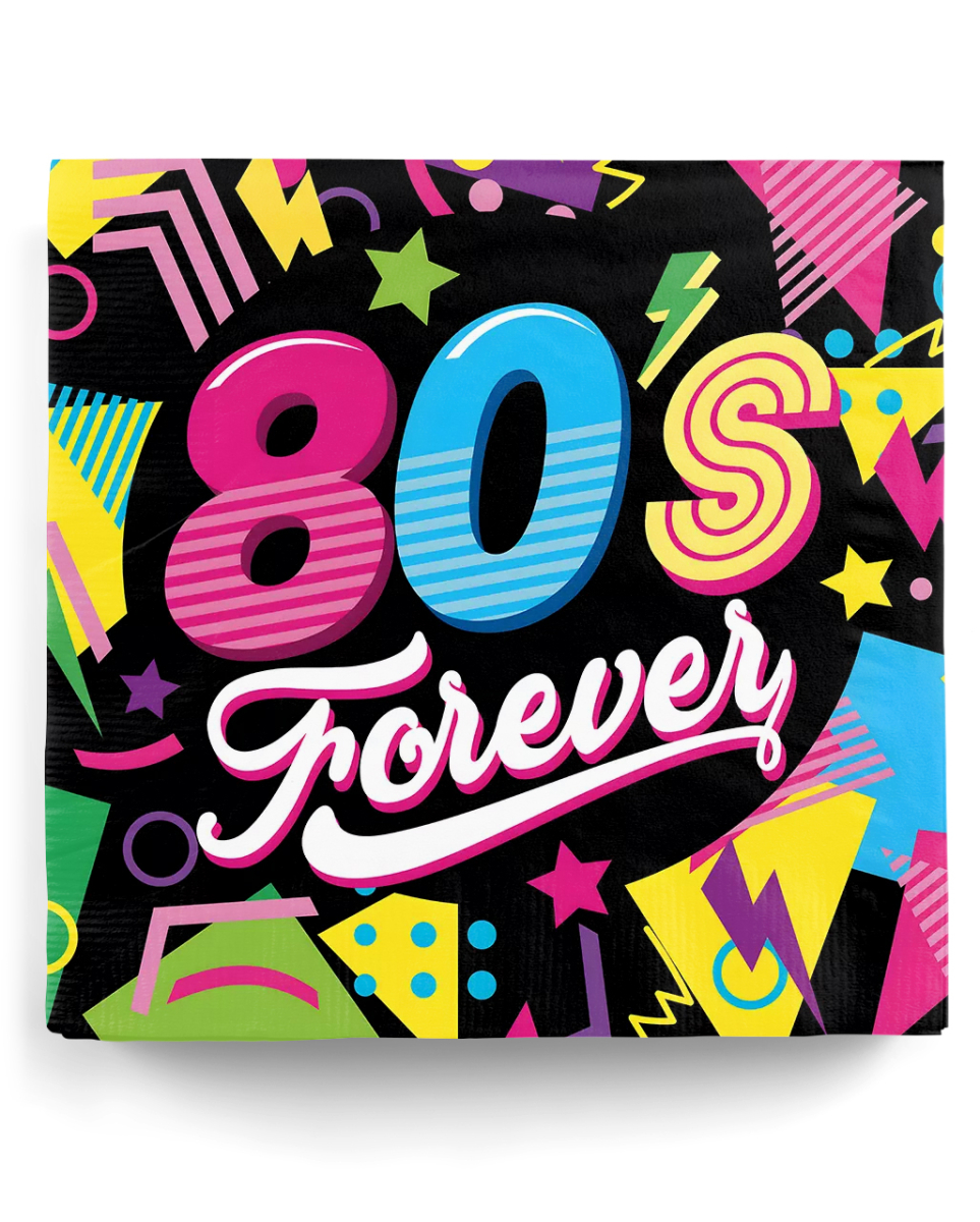 80’s Forever Servietten für Mottopartys 12 Stück Bunte Einmalservietten für 80er Jahre Themenpartys Tauche ein in eine Welt voller Farben und Nostalgie mit den 80’s Forever Servietten. Die Zeit der Neonfarben und Vokuhila-Frisuren werden sie sofort begeistern. Unsere 80’s Forever Servietten für Mottopartys 12 Stück kommen im praktischen Set zu dir nach Hause. Jede Serviette hat eine Größe von ca. 33 x 33 cm. Die leuchtenden Farben und das auffällige Design machen die Einmalservietten zu einem echten Highlight auf deinem Fest. Lieferumfang: 1 x 80’s Forever Servietten für Mottopartys 12 Stück Inhalt: 12 Stück Farbe: Schwarz, Pink, Blau, Gelb, Lila, Weiß, Grün Größe: ca. 33 x 33 cm Material: Zellstoff Farbenfrohe 80ies Einmalservietten 80er Jahre Tischdeko