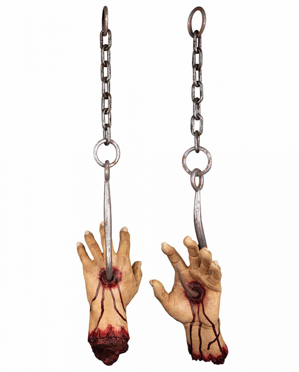 Abgetrennte Hand Rechts und Links am Haken Hände als Leichenteile am Schlachterhaken Wenn Unbefugte dein Territorium betreten, erblicken sie die abgetrennte Hand rechts und Links am Haken. Die eklige Leichenteile Deko sieht wahnsinnig echt aus und ist die perfekte Requisite für Horrorfilme. Die abgetrennten Hände am haken bestehen aus hochwertigem Latex und Kunststoff. Sie sind detailreich von Hand bemalt und lassen sich beliebig platzieren. Als Splatter-Requisite und Halloween Deko ein echtes Highlight! Lieferumfang: 1 x Abgetrennte Hand Rechts und Links am Haken Inhalt: 1x rechte Hand am Haken, 1x linke Hand am Haken Farbe: Beige, Rot, Braun Größe: Lebensecht Material: Latex, Kunststoff Ein Paar Hände, das am Fleischerhaken baumelt Bleiche, blutverschmierte Hände als Körperteil Deko Schlachthaus Dekoration für Halloween Von Hand bemalte Latex Hände als Horrorfilm Requisite Der Artikel ist ein Dekoartikel und kein Spielzeug. Nicht für Kinder unter 3 Jahren geeignet. Kann Kleinteile enthalten, die verschluckt werden können – Erstickungsgefahr. Von Feuer und offenen Flammen fernhalten.