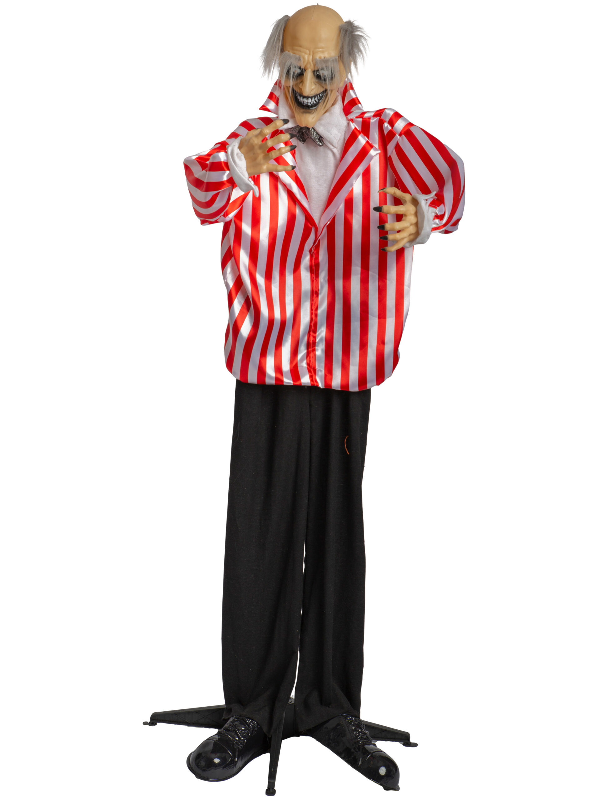 Mit der lebensgroßen Puppe des Creepy Old Man schaffst Du mit wenig Aufwand die passende Grusel-Atmosphäre an Halloween! Wer von dem irren Blick und dem diabolischen Grinsen nicht schon beeindruckt ist, wird sich spätestens bei den bunt flackernden Augen mit Soundeffekt erschrecken. Die Funktion kannst Du entweder dauerhaft laufen lassen oder per Knopfdruck den perfekten Zeitpunkt abpassen.