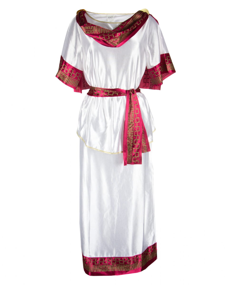 Antike Griechin Kostüm für Fasching und Karneval Elegante historische Kostümierung für adlige Frauen der Antike Werde mit unserem antike Griechin Kostüm für Fasching und Karneval zu einer griechischen Adligen oder Göttin! Auf historischen Mottopartys und an Fastnacht wirst du mit der sexy Römerin-Verkleidung garantiert zum absoluten Eyecatcher! Das antike Griechin Kostüm für Fasching und Karneval besteht aus einem bodenlangen, schneeweißen Kleid und einem Gürteltuch. Das Kleid des Römerin-Kostüms weist an der linken Seite einen sexy Einschnitt für dein Bein auf und an der Hüfte eine Raffung, die von einer goldenen Borte verziert wird. Die Säume des historischen Kostüms werden von roten Bändern mit goldenen antiken Symbolen geschmückt, wie auch der lockere Kragen im römischen Stil und das Gürteltuch, mit dem du dein Faschingskostüm auf die gewünschte Taillierung gurten kannst. Lieferumfang: 1x Antike Griechin Kostüm für Fasching und Karneval Inhalt: 1 Kleid, 1 Gürteltuch (Schmuck nicht inkl.) Farbe: weiß/rot/gold Größe: M, L, XL (entspricht Konfektionsgröße 42, 44 und 46) Material: 100% Polyester Der Artikel ist für Erwachsene und kein Spielzeug. Nicht für Kinder unter 3 Jahren geeignet. Kann Kleinteile enthalten, die verschluckt werden können – Erstickungsgefahr. Von Feuer und offenen Flammen fernhalten.