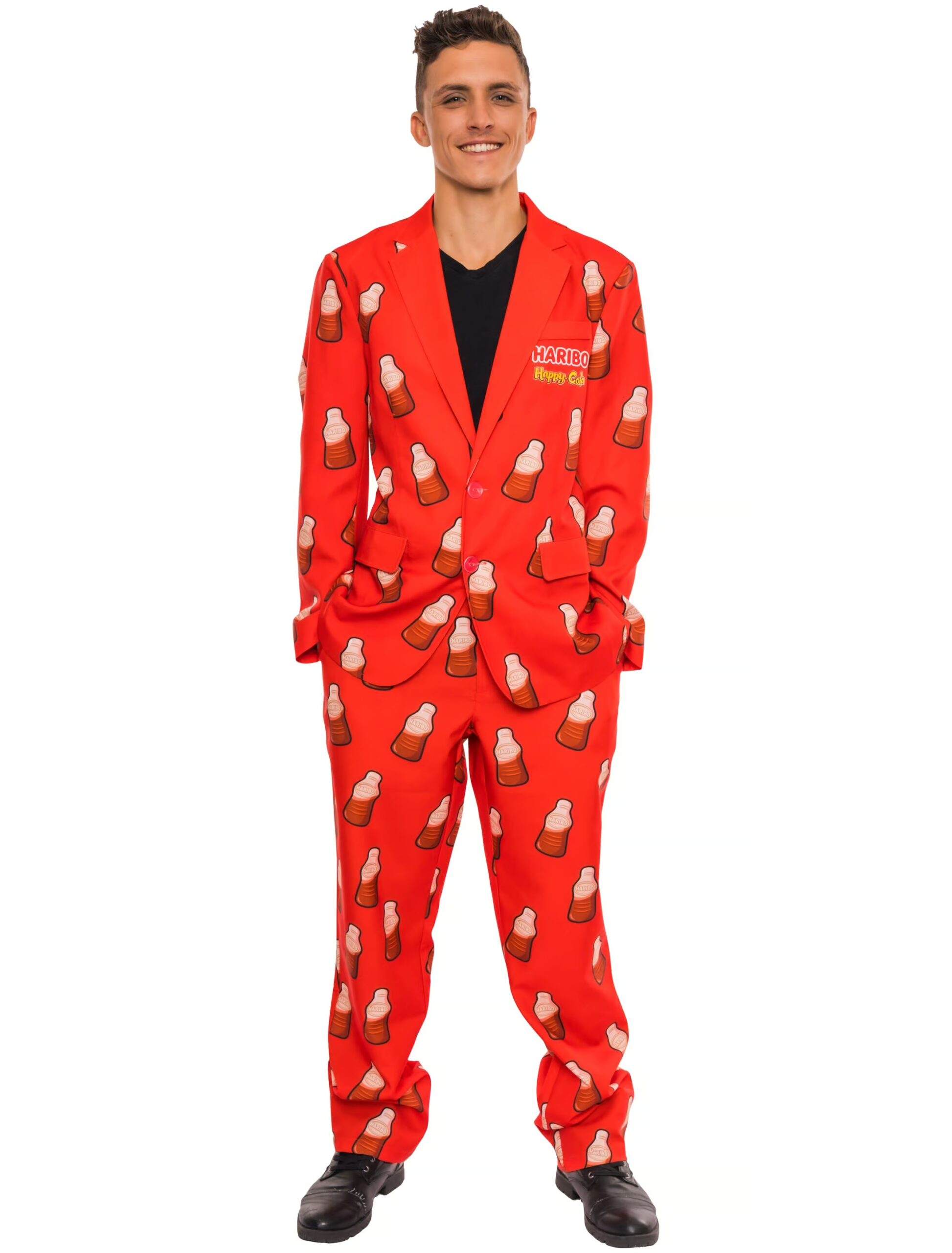 Tauche ein in die spritzige Welt des Anzugs HARIBO Happy-Cola für Herren – ein sensationelles Kostüm, das exklusiv bei Deiters erhältlich ist! Dieser farbenfrohe Anzug ist nicht nur ein Blickfang, sondern auch eine Hommage an die erfrischenden Happy-Cola Leckereien. Der Anzug ist in verschiedenen Größen von S bis 3XL erhältlich, um sicherzustellen, dass jeder die Gelegenheit hat, sich in diesen stylishen und verspielten Look zu werfen. Das auffällige Rot des Anzugs repräsentiert die unverwechselbare Farbe von HARIBO Happy-Cola und verleiht jedem Anlass eine prickelnde Note. Egal, ob du auf einer Karnevalsparty, bei Halloween oder einer Mottoparty glänzen möchtest, dieser Anzug wird garantiert für Aufsehen sorgen. Er besteht aus hochwertigem Material, das nicht nur bequem ist, sondern auch dafür sorgt, dass du dich in diesem fantastischen Kostüm den ganzen Abend lang wohlfühlen kannst. Mit dem Anzug HARIBO Happy-Cola für Herren setzt du nicht nur ein modisches Statement, sondern bringst