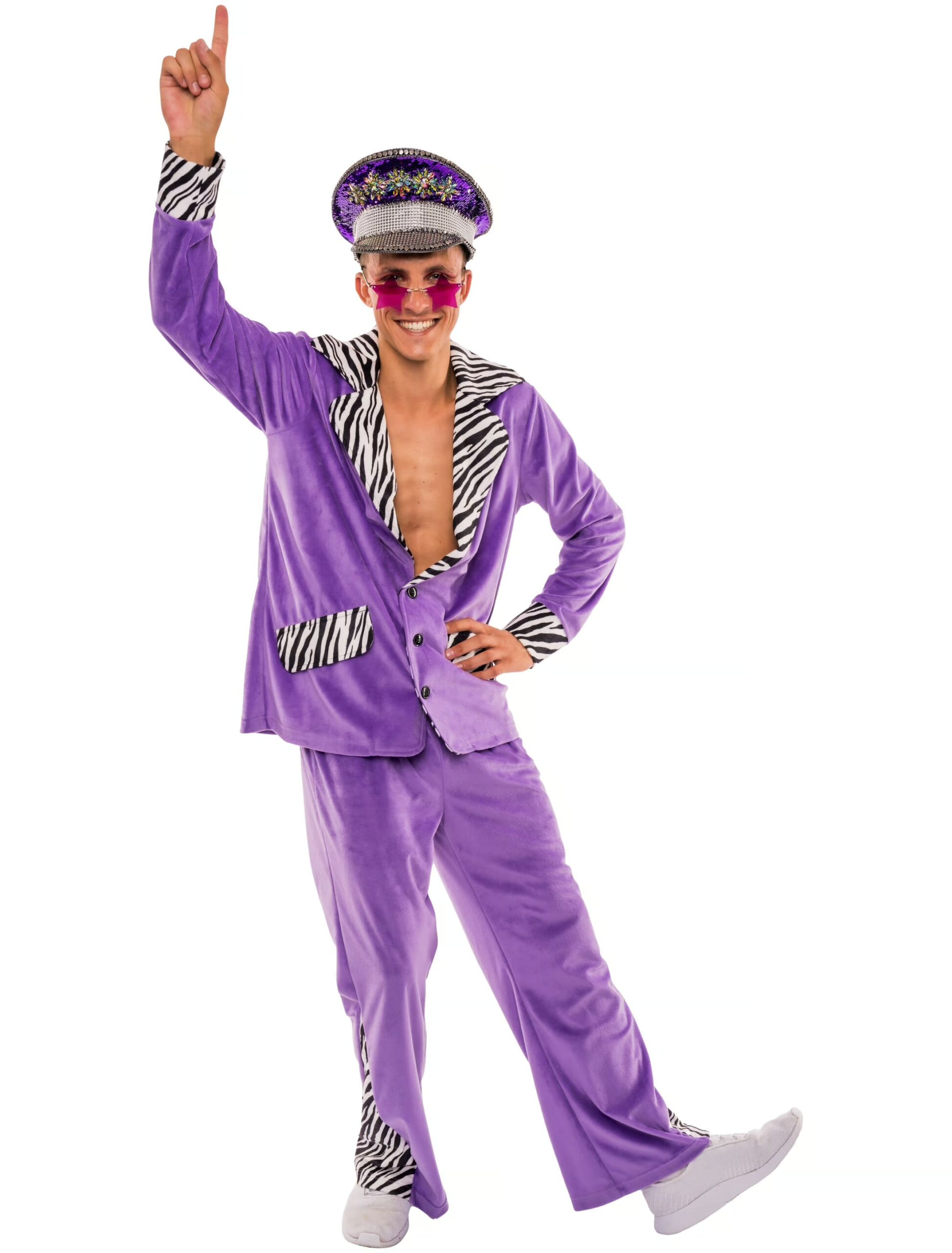 Anzug Zebra Animal print Herren lila S/M, ideal für Karneval & Fasching