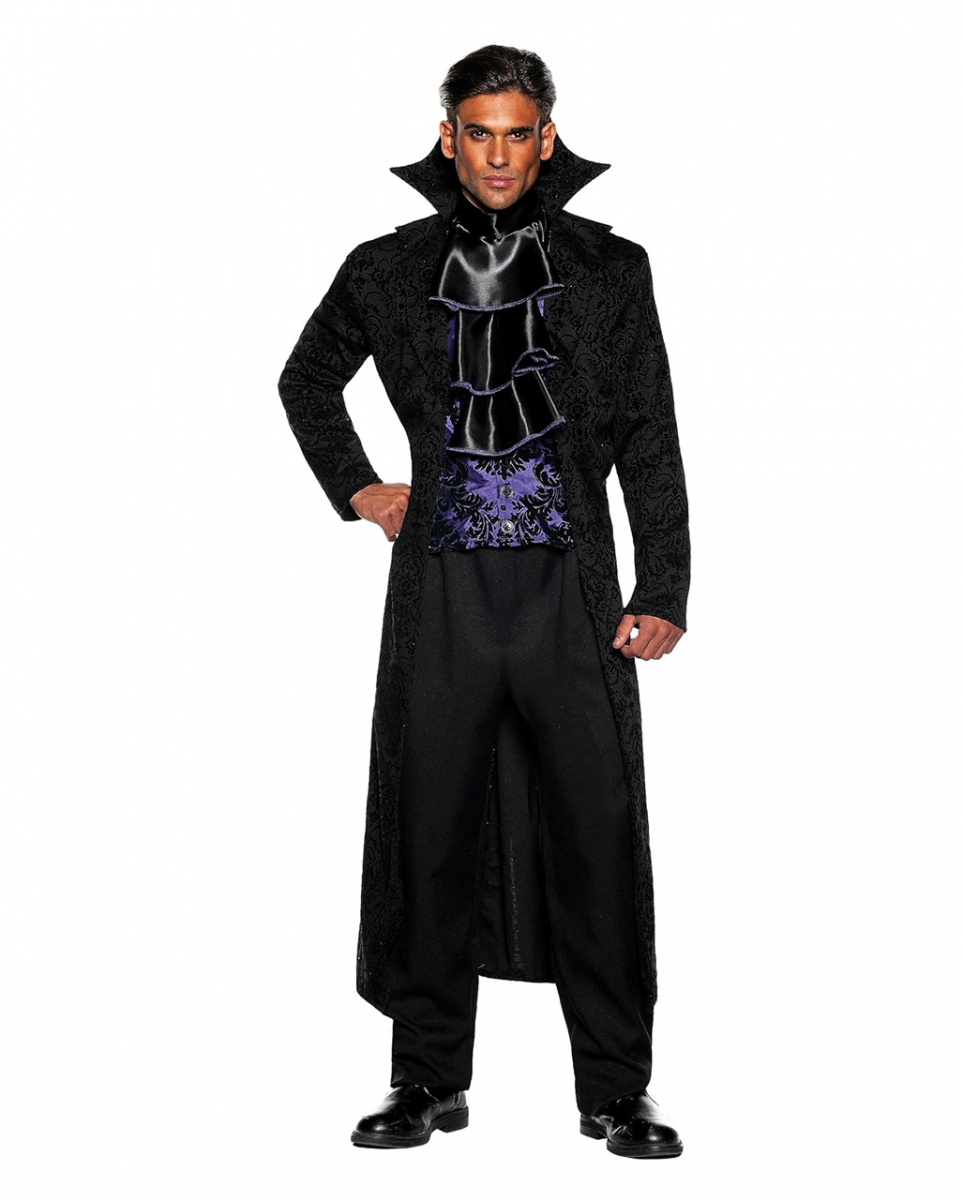 Herrenkostüm aristokratischer Vampir für Halloween Elegante Blutsauger Verkleidung für einen mystischen Auftritt an Halloween und Fasching Bist du bereit, in die Welt der Vampire einzutauchen und als eleganter Blutsauger auf der Gruselparty zu erscheinen? Mit dem Herrenkostüm aristokratischer Vampir wirst du alle Blicke auf dich ziehen. Niemand wird deinem Look widerstehen können. Das Herrenkostüm aristokratischer Vampir besteht aus einem Mantel mit angenähter Weste, einem Jabot und einer Hose. Der Mantel und die Weste sind mit einem viktorianischen Muster verziert, während die lila Weste mit Zierknöpfen für einen edlen Look sorgt. Lieferumfang: 1 x Herrenkostüm aristokratischer Vampir Inhalt: 1x Mantel mit angenähter Weste, 1x Jabot, 1x Hose Farbe: Schwarz, Lila Größe: One Size, XXL Material: 100% Polyester Viktorianisches Muster auf Jacke und Weste Lila Weste mit Zierknöpfen Eleganter Stehkragen Jabot in Satinoptik mit lila Einfassungen Verkleide dich an Halloween in einen adeligen Blutsauger Größen: ONE SIZE (50-52) XXL (58-60) Brustumfang: ca. 107 – 116 cm ca. 127 – 133 cm Taillenumfang: ca. 98-112 cm ca. 117 – 122 cm Halsumfang: ca. 42,5 – 43,5 cm ca. 46,5 – 47,5 cm
