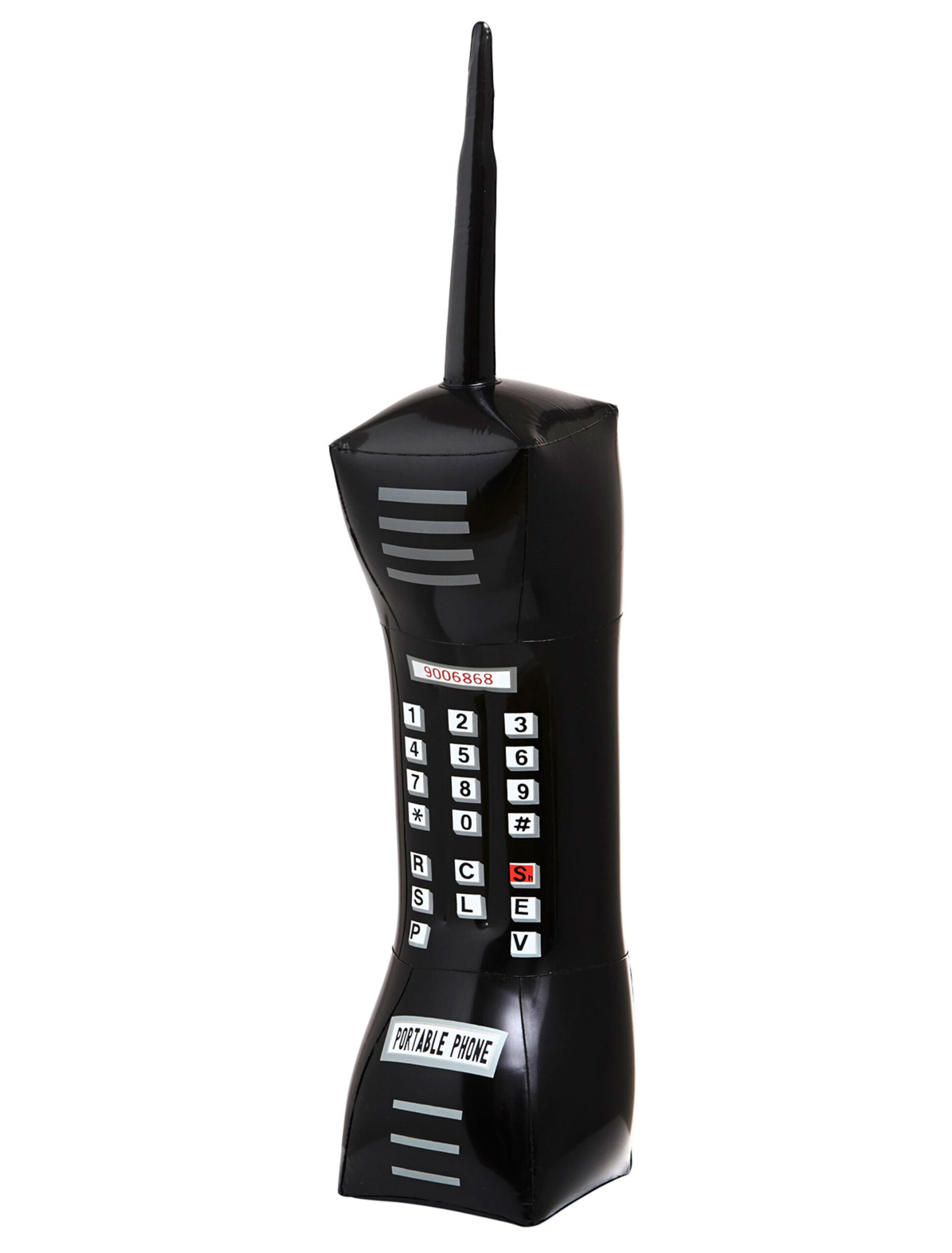 So in etwa sahen die Handys früher aus, allerdings nicht ganz so groß wie dieses aufblasbare Exemplar. Die übergroße Telefon-Attrappe mit den vielen Details (Tasten, Antenne) kannst Du bequem selbst aufpusten und direkt einsetzen. Besonders gut sieht sie in Kombination mit einem nerdigen Kostüm aus! Es dauert sicher nicht lange, bis Du nach Deiner Nummer gefragt wirst!