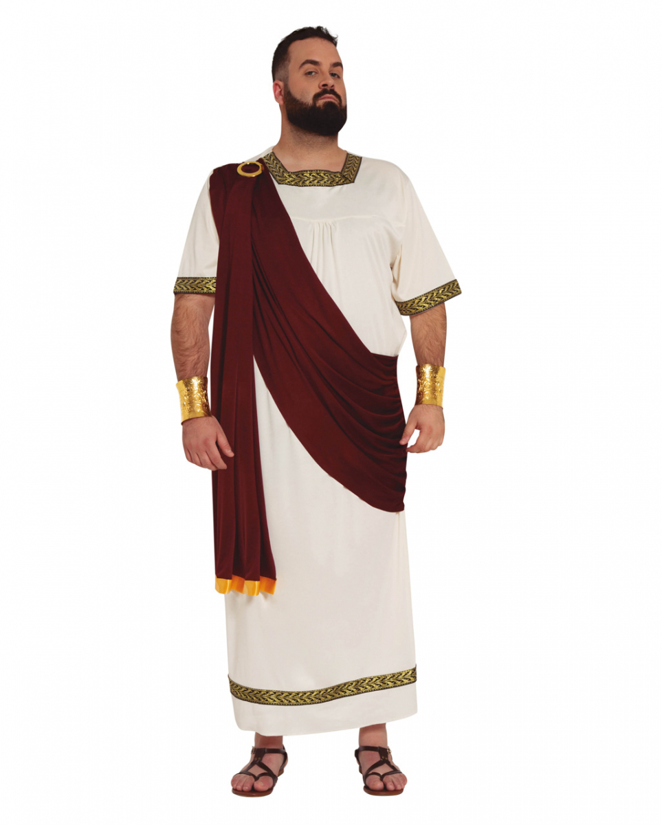 Römisches Kaiser Augustus Kostüm Historische Toga für Karneval und Mottopartys In dem Römischen Kaiser Augustus Kostüm regierst du als Erbe von Julius Caesar über das mächtigste Reich der Antike mit strenger Hand. Das Römische Kaiser Augustus Kostüm ist eine lange weiße Toga, die mit einer roten Schärpe und einer goldenen Schnalle auf der Schulter geschmückt ist. Die Säume an Hals und Ärmeln sowie der untere Bereich des Gewands sind mit gold-schwarzen Bordüren verziert. Lieferumfang: 1 x Römisches Kaiser Augustus Kostüm Inhalt: 1 x Toga mit Schärpe Farbe: weiß/rot/gold/schwarz Größe: L 52/54, XL 54/56 Material: 100% Polyester Schuhe, Schmuck und Kranz nicht Inklusive Achtung: Der Artikel ist ein Kostüm für Erwachsene und kein Spielzeug. Nicht für Kinder unter 3 Jahren geeignet. Kann Kleinteile etnhalten, die verschluckt werden können. Es besteht dadurch Erstickungsgefahr. Vor Feuer und Flammen entfernt halten
