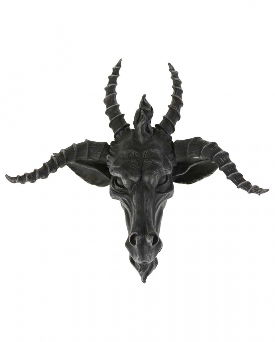 Baphomet Goat of Mendes Wandbild 25cm Okkulter Ziegenschädel mit Pentagramm als Baphomet Wohndeko Das mystische Baphomet Goat of Mendes Wandbild zeigt die von den Freimaurern verehrte Sabbat Ziege. Die gehörnte Kreatur ist ein Sinnbild für okkulte Magie und eine fantastische Wanddeko für Gothics. Unser Baphomet Goat of Mendes Wandbild ist ca. 25 cm groß und aus feinstem Polyresin gegossen. Das Baphomet Wandobjekt zeigt einen Ziegenschädel mit mehreren Hörnern und einem Pentagramm auf der Stirn. Lieferumfang: 1 x Baphomet Goat of Mendes Wandbild 25cm Farbe: Schwarz Größe: ca. 31 x 25 x 14 cm Gewicht: 580 g Material: Polyresin Schwarze Baphomet Deko für die Wand Ziegenschädel als Freimaurer Symbol Mit Aufhängung geliefert Der Artikel ist ein Dekoartikel. Nicht für Kinder unter 3 Jahren geeignet. Kann Kleinteile enthalten, die verschluckt werden können – Erstickungsgefahr. Von Feuer und offenen Flammen fernhalten.
