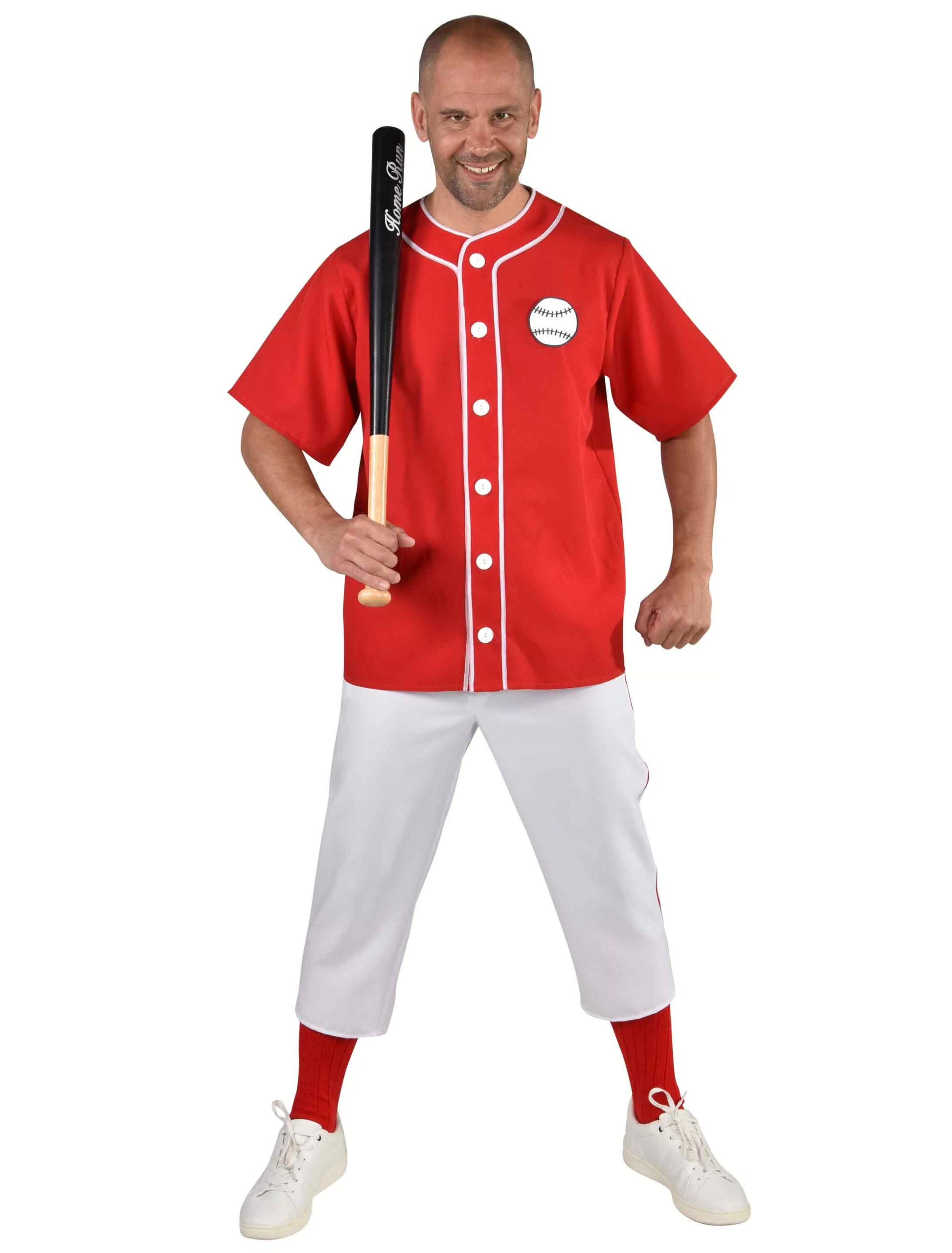 Werde zum Babe Ruth der Karnevalsparty mit unserem sportlichen Baseball-Spieler Kostüm für Herren. Das zweiteilige Set, bestehend aus Oberteil und Hose, macht Dich nicht nur zu einem Weltstar auf dem Sportplatz, sondern zu einem echten Partylöwen beim närrischen Feiern. Dazu kannst Du einen Baseball Schläger als Accessoire mitnehmen und ein paar Home Runs beim nächsten Karnevalsumzug schlagen. In vielen Größen lässt sich das Outfit in den Farben Rot und Weiß bestellen. Als Pitcher kannst Du auch einen Baseball Handschuh anziehen und natürlich darf die passende Basecap nicht fehlen, die Du ebenfalls bei uns erwerben kannst. Exklusiv Artikel.