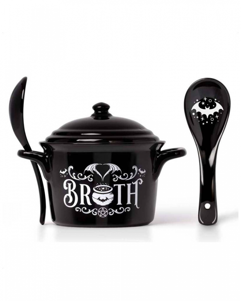Gothic Suppen- und Müslischale mit Fledermausmotiv Halloween Geschirr für Eintöpfe, Brühen und Suppen Serviere Halloween Gerichte in unserem magischen Hexen Kochtopf als Essschale. Das schwarzweiße Gothic Geschirr kommt mit passendem Löffel und einem Deckel – perfekt, um deine Tischdeko auf Halloween abzustimmen. Unser Gothic Suppen- und Müslischale mit Fledermausmotiv besteht aus Keramik und kommt mit einem passenden Löffel sowie einem Deckel zum Warmhalten der Speise. Das Wicca Design mit Schnörkel-Schrift überzeugt nicht nur Halloween Fans. Lieferumfang: 1 x Gothic Suppen- und Müslischale mit Fledermausmotiv Inhalt: 1 x Topf, 1 x Deckel, 1 x Löffel Farbe: Schwarz, Weiß Größe: ca. 12 x 15 x 12 cm, Fassungsvermögen: ca. 425ml Material: Keramik Schwarzer Hexen Kochtopf mit Deckel für Suppe, Brühe und Eintopf Deckel und Löffel passend dazu Weißer Schriftzug ",Broth", und Fledermaus Motiv Geschenkidee und Halloween Tischdeko Für Mikrowelle, Ofen und Spülmaschine geeignet Nicht für Kinder unter 3 Jahren geeignet. Kann Kleinteile enthalten, die verschluckt werden können – Erstickungsgefahr.
