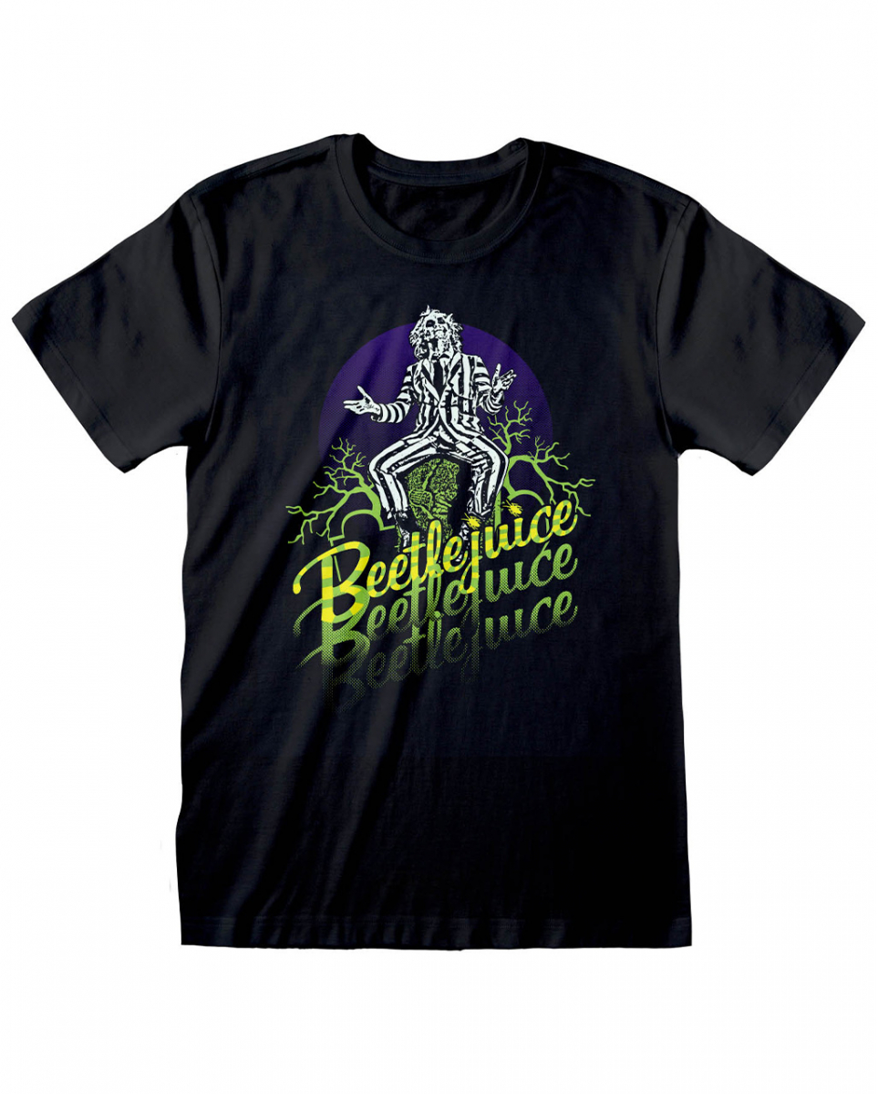 Beetlejuice Triple B T-Shirt Kultiges Unisex Oberteil mit buntem Print Beetlejuice, Beetlejuice, Beetlejuice! Schwupps, da ist es schon, unser Beetlejuice Triple B T-Shirt! Sichere dir den Lottergeist aus der gleichnamigen Horrorkomüdie von Kult-Regisseur Tim Burton als cooles Fanshirt. Das Beetlejuice Triple B T-Shirt besteht zu 100 % aus Baumwolle und ist in den Größen S bis XXL verfügbar. Auf der Vorderseite ist der Chaos-Geist im grellen Comic Print zu sehen, inklusive ",Beetlejuice", Schriftzug. Weiteren Merch von Beetlejuice findest du bei uns im Shop. Lieferumfang: 1 x Beetlejuice Triple B T-Shirt Farbe: Schwarz, Lila, Weiß, Grün, Gelb Größe: S, M, L, XL, XXL Material: 100 % Baumwolle Lizenziertes Beetlejuice T-Shirt für Erwachsene Must Have für Fans des freakigen Kult Geists Der Artikel ist für Erwachsene und kein Spielzeug. Nicht für Kinder unter 3 Jahren geeignet. Kann Kleinteile enthalten, die verschluckt werden können – Erstickungsgefahr. Von Feuer und offenen Flammen fernhalten.