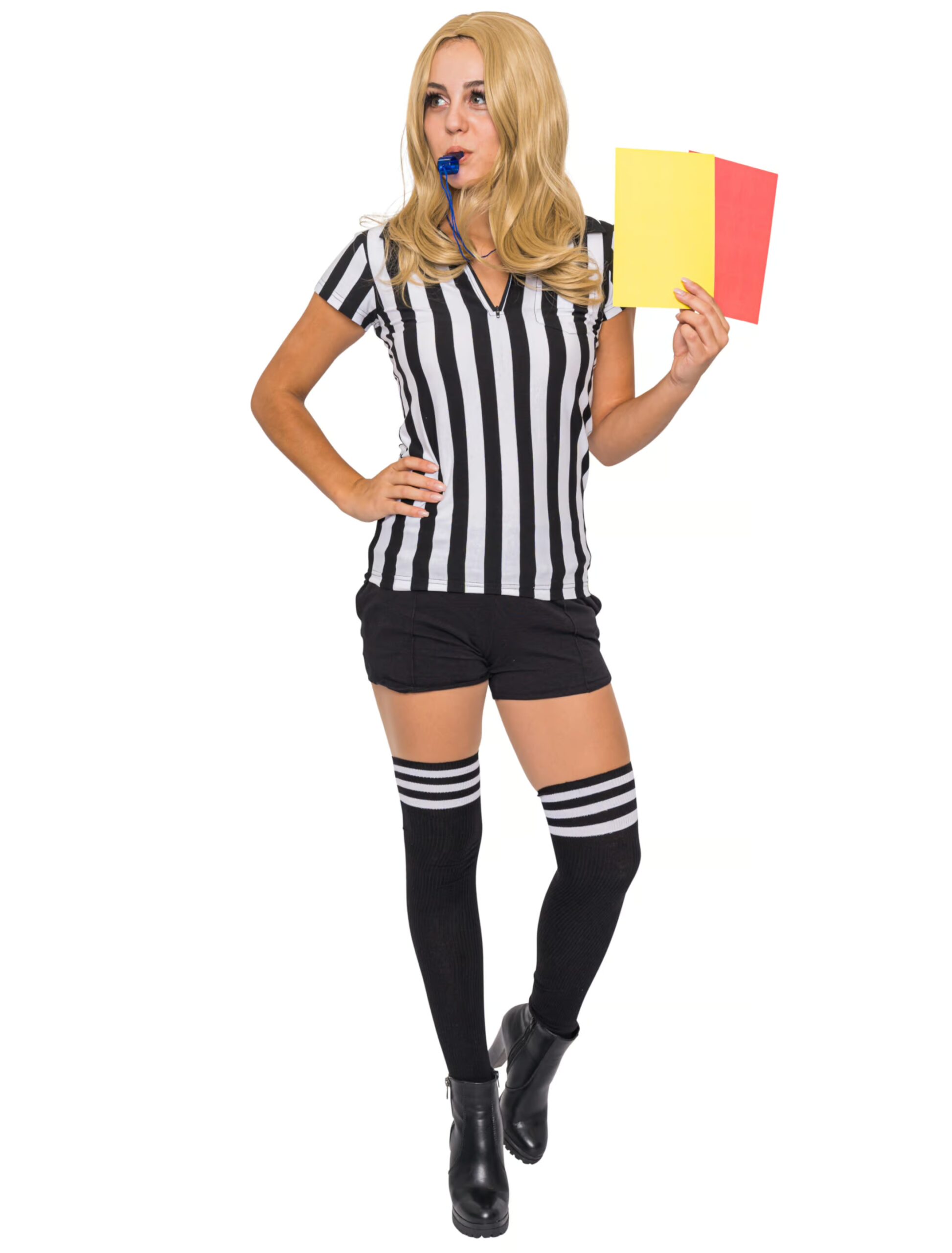 Es ist noch gar nicht so lange her, da gab es überhaupt gar keine weiblichen Schiris. Die erste Frau, die ein Fußballspiel pfiff, war eine Berlinerin. Doch auch im Männersport Fußball gibt es im Übrigen nun immer mehr Frauen als Schiedsrichterin. Wenn Du Dich zum Fasching als sexy Schiedsrichterin verkleiden möchtest, bestelle jetzt 24/7 diese stylische schwarz-weiß gestreifte Bluse aus Polyester zu Karneval und Fasching!