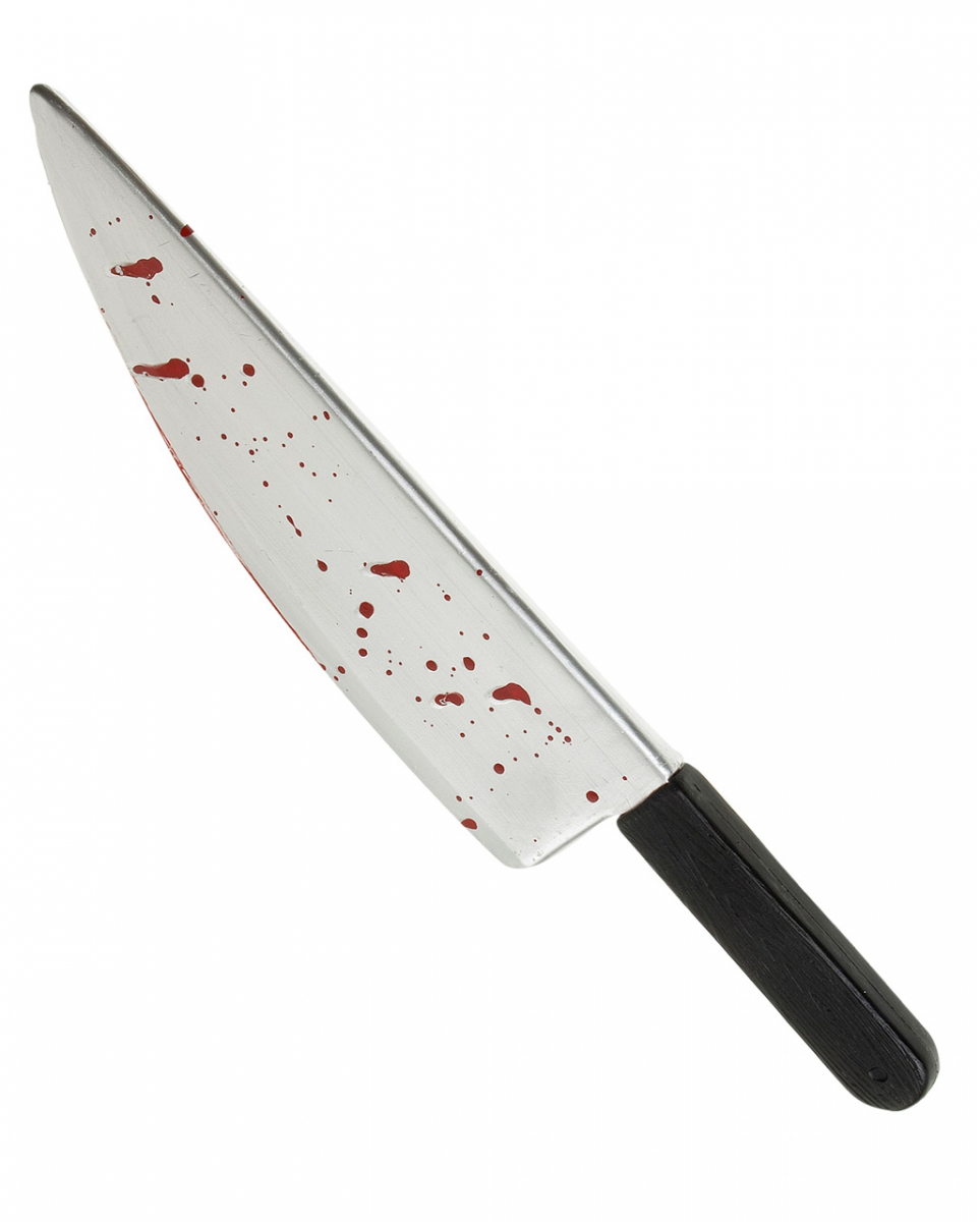 Blutiges Schlachtermesser Klassische Metzgermesser mit Blutspritzern für Halloween Blutige Schlachtermesser spielen fast in jedem Horrorfilm eine Hauptrolle. Sei es zu Verteidigung oder um als Angriffswaffe, der Weg führt meist zum Küchenmesser. Das realistisch aussehende Metzgermesser ist aus Kunststoff (nicht scharf!) und eignet sich als Kostüm-Zubehör oder Dekorationswaffe für Hobby-Psychopathen wie Jason, Michael Myers oder Norman Bates. Das blutige Schlachtermesser mit silberfarbenen, blutbespritzer Klinge und dem schwarzen Griff und Blutspritzern auf der Klinge ist 48 cm lang und aus Kunststoff. Lieferumfang: 1 x blutiges Schlachtermesser Material: Kunststoff, Größe: ca. 48 cm