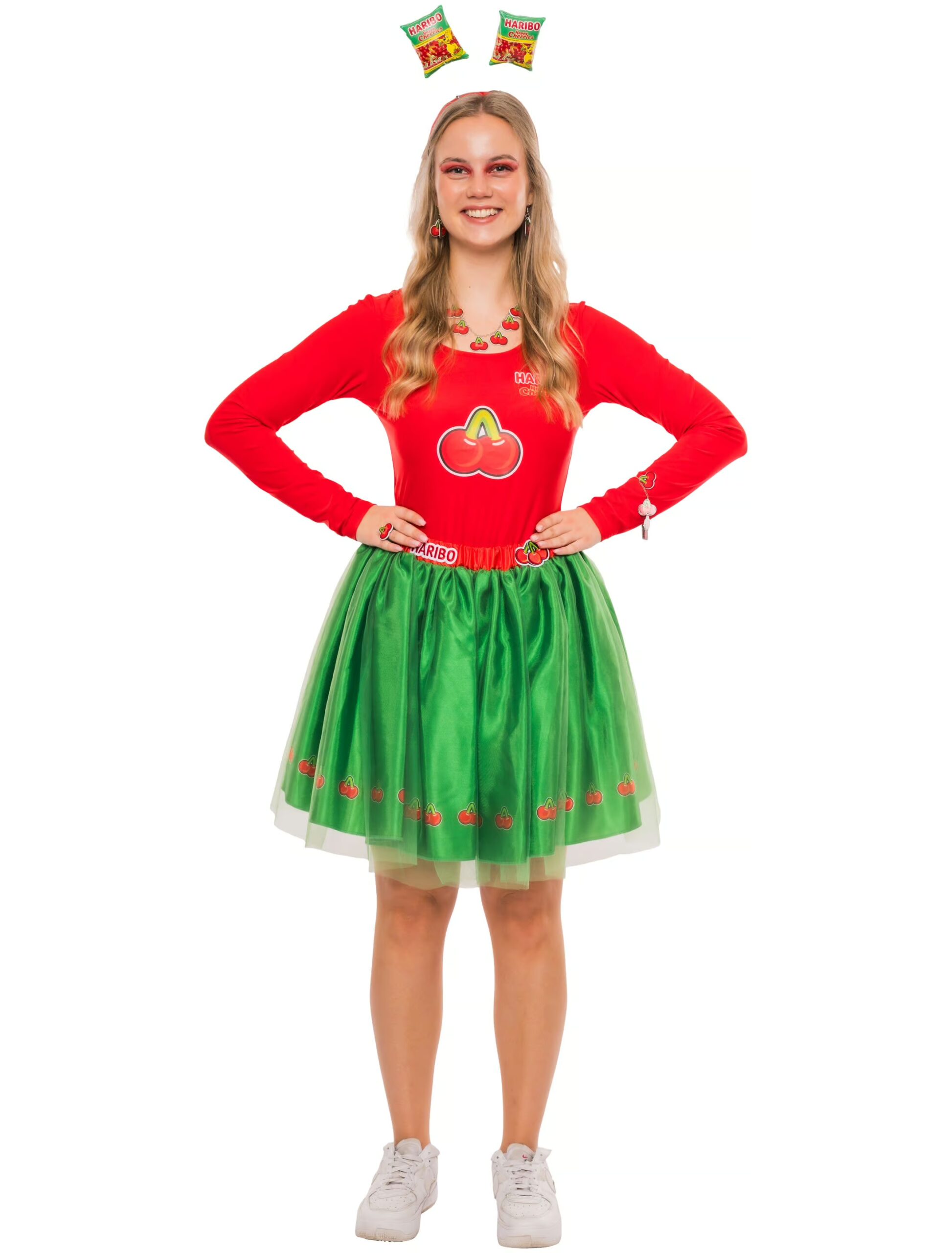 Bereichere Deine Faschings- und Karnevals-Garderobe mit dem exklusiven HARIBO Happy Cherries Damen Body in Rot – nur bei Deiters erhältlich! Dieser verführerische Body, erhältlich in den Größen S/M bis 2XL/3XL, kombiniert fröhliches Design mit bequemem Tragekomfort, damit Du auf den närrischen Bühnen im Mittelpunkt stehen kannst. Der Happy Cherries Damen Body präsentiert sich in leidenschaftlichem Rot, inspiriert von den beliebten HARIBO Kirsch-Gummis. Ob auf dem Karnevalsumzug oder dem Faschingsfest – in diesem Body zeigst Du Deine Liebe zu den süßen und freudigen Momenten von Fasching und Karneval. Die verschiedenen Größen von S/M bis 2XL/3XL ermöglichen Dir die perfekte Passform für Deine Figur. Der exklusive Look dieses Bodys macht ihn zum idealen Begleiter für alle Damen, die Fasching und Karneval mit Stil und Freude feiern wollen. Verleihe Deinem Faschings- und Karnevalsoutfit eine verführerische Note mit dem HARIBO Happy Cherries Damen Body. Hol Dir jetzt Deinen Body, exklusiv