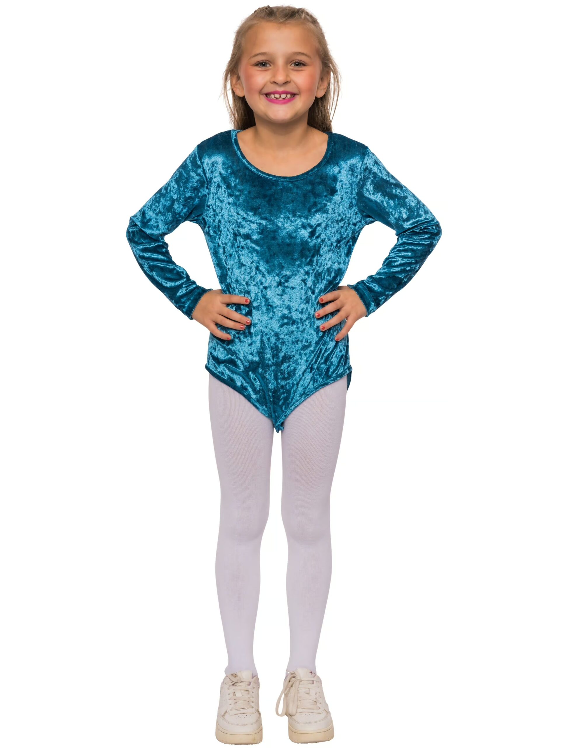 Body langarm Samt Kinder türkis 116-128, ideal für Karneval & Fasching
