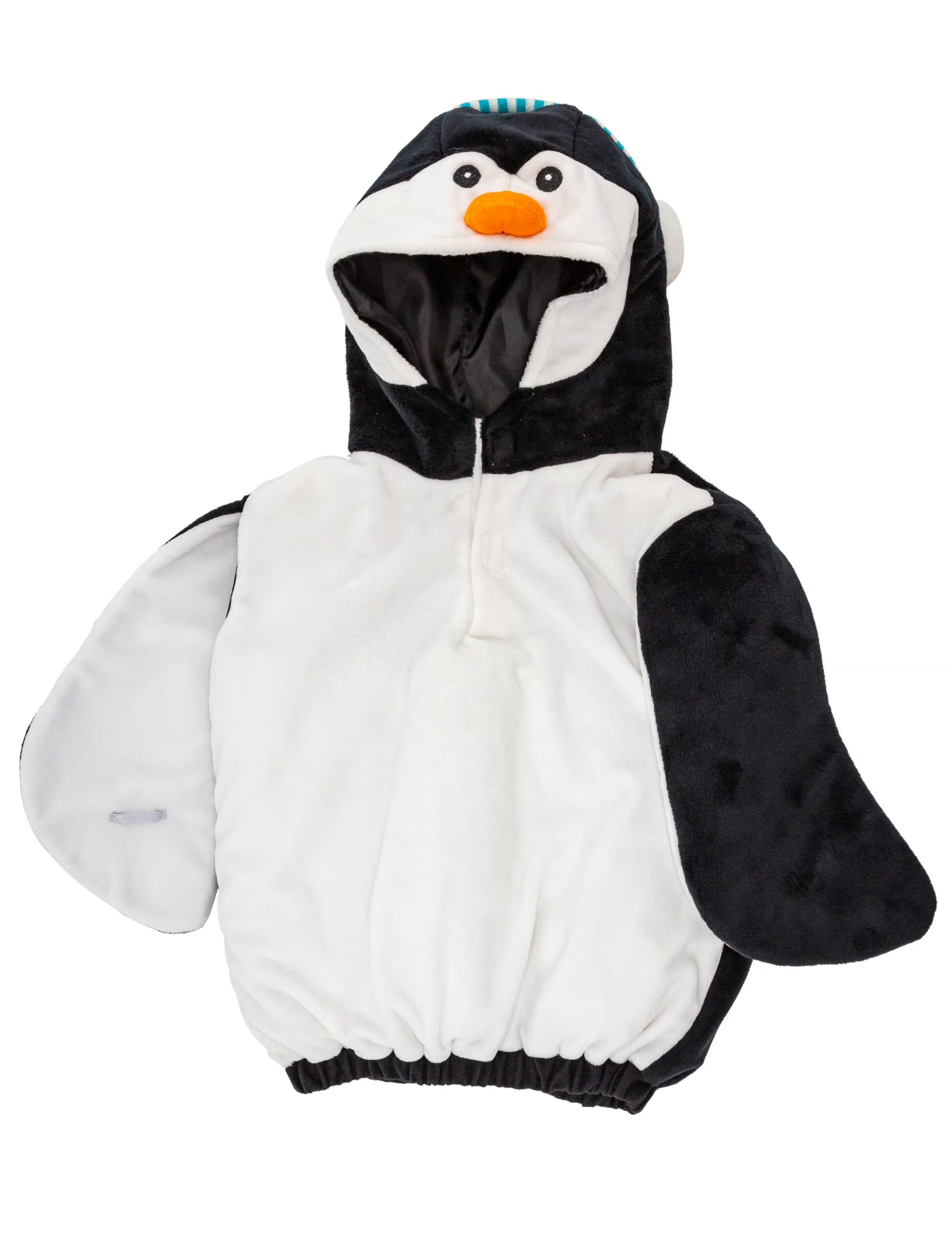 Ganz entzückend ist unser Pinguin Body für Kinder mit dem Du Deinen kleinen Liebling zum Fasching oder zum Kindergeburtstag in einen süßen, kleinen Pinguin verwandeln kannst. Der niedliche, ärmellose, schwarz-weiße Plüschoverall mit den PinguinFlügelchen und der gefütterten Pinguinkopf-Kapuze mit dem freundlichen Gesicht ist mit einem praktischen Klettverschluss ausgestattet. Er ist ideal für Faschingskostümierungen, denn er kann auch über der normalen Kleidung getragen werden und Dein Kleines steckt immer schön warm.