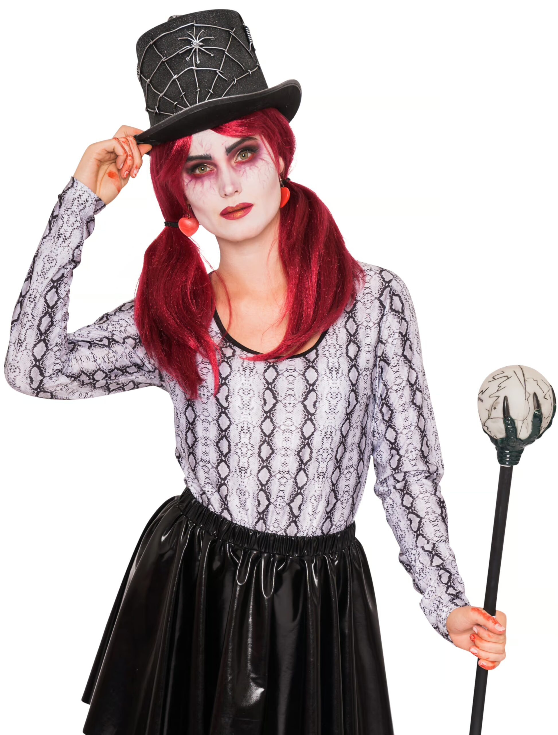 Der langärmlige Body in grauer Schlangenhaut-Optik verwandelt Dein Outfit in ein spannendes und einzigartiges Kostüm mit dem Du garantiert zum Hingucker auf jeder Festivität wirst. Der Body ist in verschiedenen Größen erhältlich und durch sein Material leicht dehnbar und flexibel. Ein schöner runder Halsausschnitt und der figurbetonte Schnitt passen sich gut Deiner Figur an. Geschlossen wird der Body über Haken. Für mehr extravagantes Zubehör, schaue gerne im Shop vorbei.