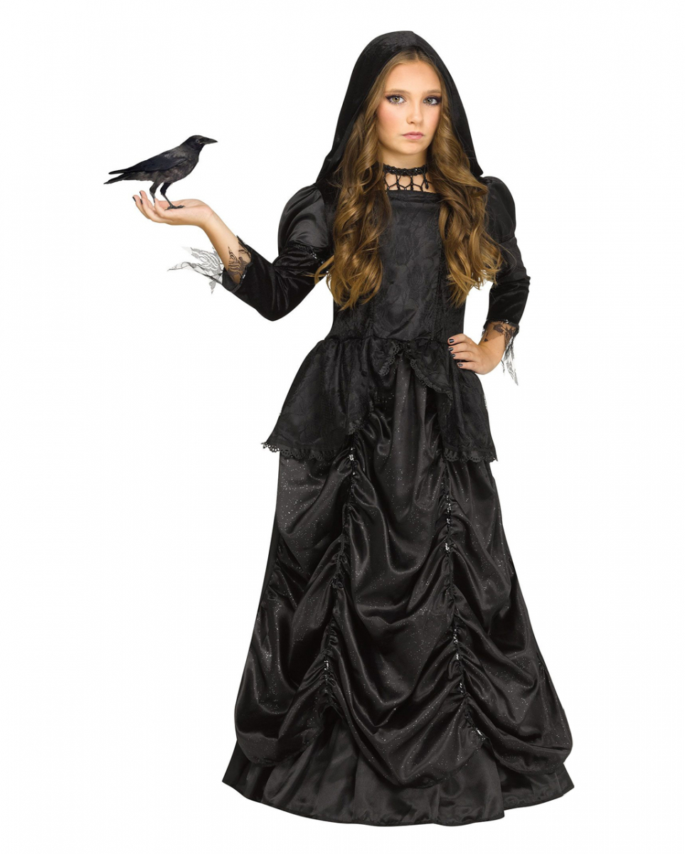 Böse Märchen Königin Kostüm für Kinder an Halloween Dunkle Königin Verkleidung mit Kapuze, Schößchen und Reifrock Tauche ein in eine Welt voller Magie und Mysterien. Schreite mit dem Böse Märchen Königin Kostüm für Kinder an Halloween durch den Raum und dein schwarzes Kapuzenkleid schimmert elegant im Kerzenlicht. Die funkelnden Akzente und der geraffte Reifrock lassen dich wie eine wahre Königin aus einem düsteren Märchen erscheinen. Das böse Märchen Königin Kostüm für Kinder an Halloween besteht aus 100% Polyester. Es ist mit schwarzen Pailletten verziert, die bei jeder Bewegung glitzern und funkeln. Die verschiedenen Stoffarten des Kleides harmonieren wunderbar miteinander und verleihen dem Kostüm einen edlen Look. Lieferumfang: 1 x Böse Märchen Königin Kostüm für Kinder an Halloween Inhalt: 1x Kostümkleid Farbe: Schwarz Größe: M, L, XL Material: 100% Polyester Funkelnde Akzente Geraffter Reifrock mit Schößchen Schwarzes Kapuzenkleid mit langen Ärmeln und Spitze Mit schwarzen Pailletten verziert Verschiedene Stoffarten harmonieren wunderbar miteinander Rabe und Schmuck nicht enthalten Größe M ca. 8-10 Jahre L ca. 12-14 Jahre XL ca. 14-16 Jahre Brustumfang ca. 69-76 cm ca. 76-81 cm ca. 81-91 cm Taillenumfang ca. 58-63 cm ca. 60-66 cm ca.71-86 cm Körpergröße ca. 124-137 cm ca. 139-152 cm ca.154-167 cm Achtung: Der Artikel ist ein Kostüm und kein Spielzeug. Nicht für Kinder unter 3 Jahren geeignet. Kann Kleinteile enthalten, die verschluckt werden können – Erstickungsgefahr. Von Feuer und offenen Flammen fernhalten.
