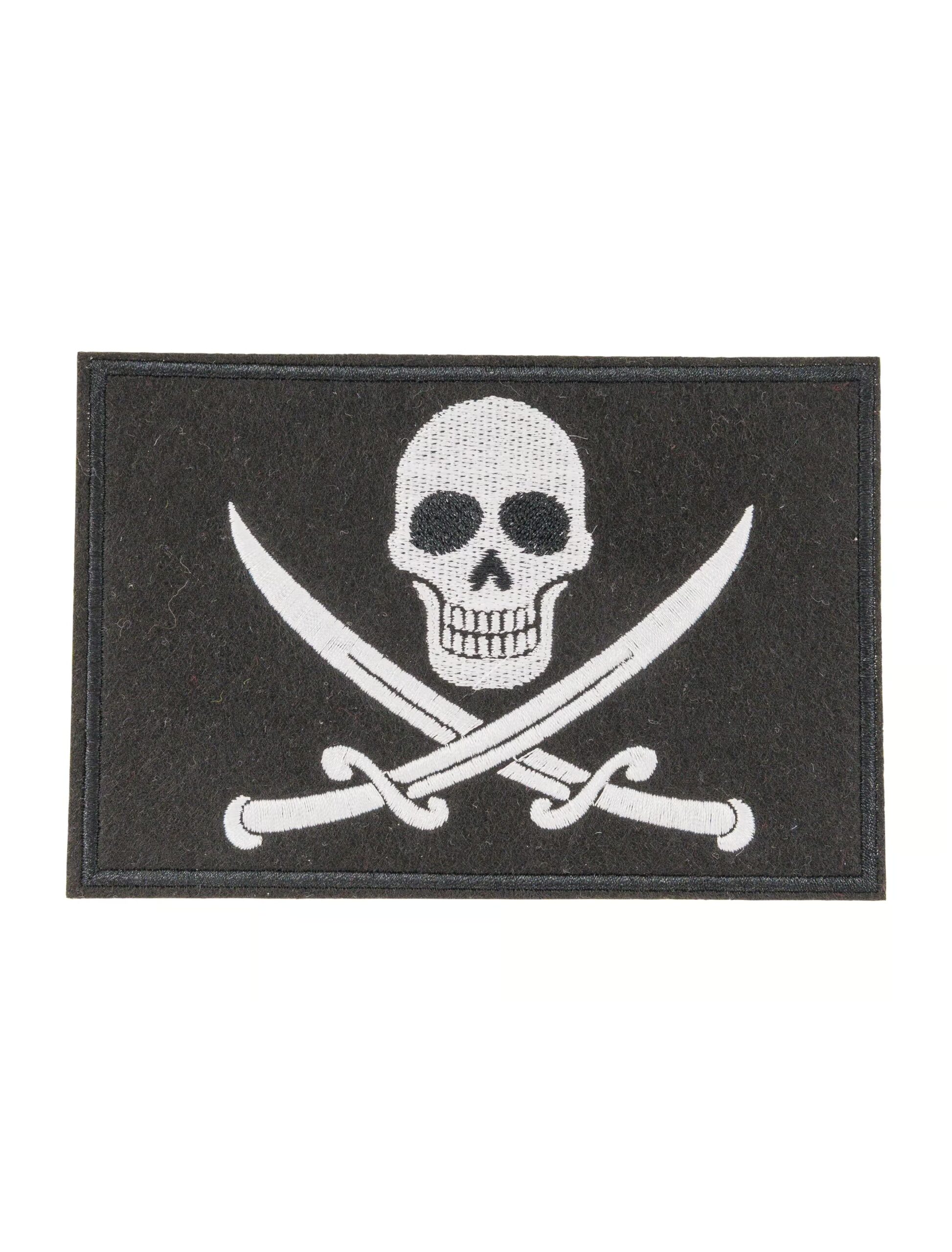 Unser auffälliger Bügelpatch zeigt eine klassische Piratenflagge im Format von 13 cm. Mit dem ikonischen Totenkopf und gekreuzten Schwertern auf schwarzem Hintergrund bringt er sofort Abenteuerstimmung auf Jacken, Rucksäcke oder Kostüme. Perfekt für kleine Freibeuter, große Seeräuberfans oder alle, die gern ein bisschen rebellischen Flair versprühen!