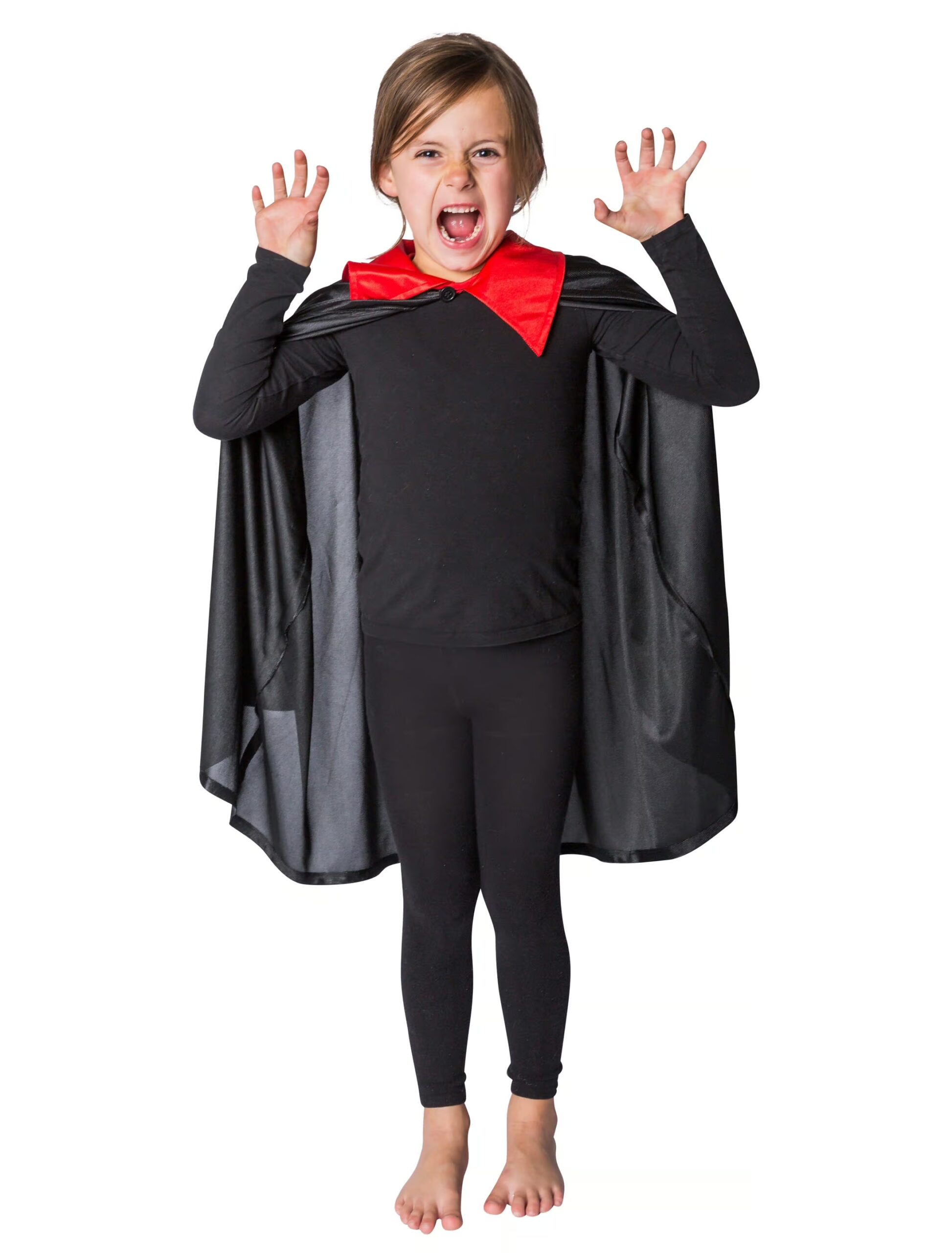 Bist Du ein Vampir, Dracula oder ein neuer Superheld? Egal, wie Du Dich entscheidest, mit Deinem schwarzen Cape und rotem Kragen siehst Du richtig cool aus. Mit Hilfe eines Knopfes am Hals wird der Umhang verbunden. Das Material besteht aus 100% Polyester. Dieser Umhang passt wunderbar zu jeder Karnevals-, Faschings- oder Halloween-Party.