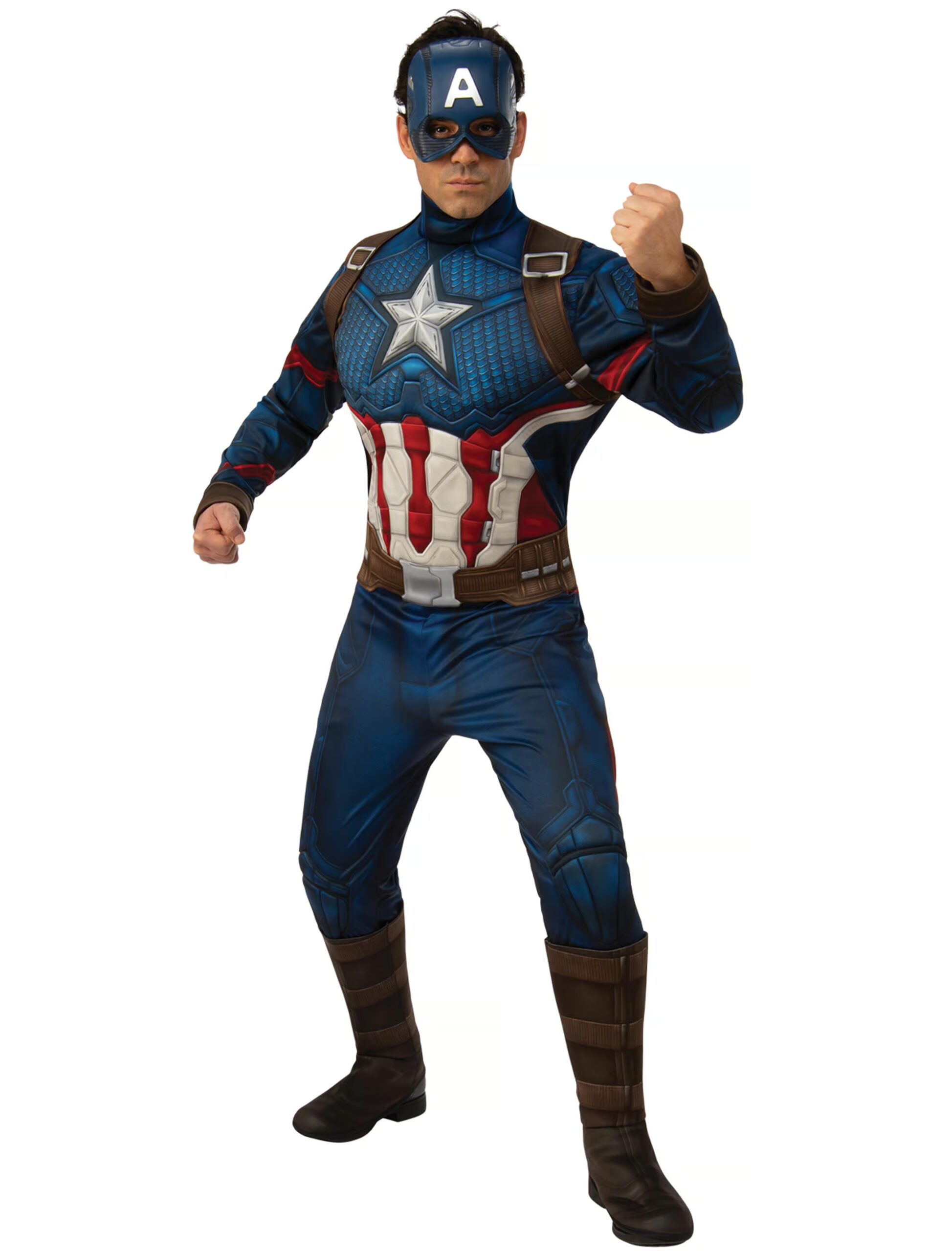Frieden und Gerechtigkeit für alle an Karneval und Halloween! Das Deluxe Set Captain America besteht aus einem Anzug mit Stiefelgamaschen und einer flexiblen Maske, die zuverlässig Deine Identität schützt. Der hochwertig bedruckte Anzug aus der offiziellen MARVEL Linzenzkollektion strahlt schon Autorität aus, durch die gepolsterten Partien fühlst Du Dich aber auch wie ein echter Muskelprotz.