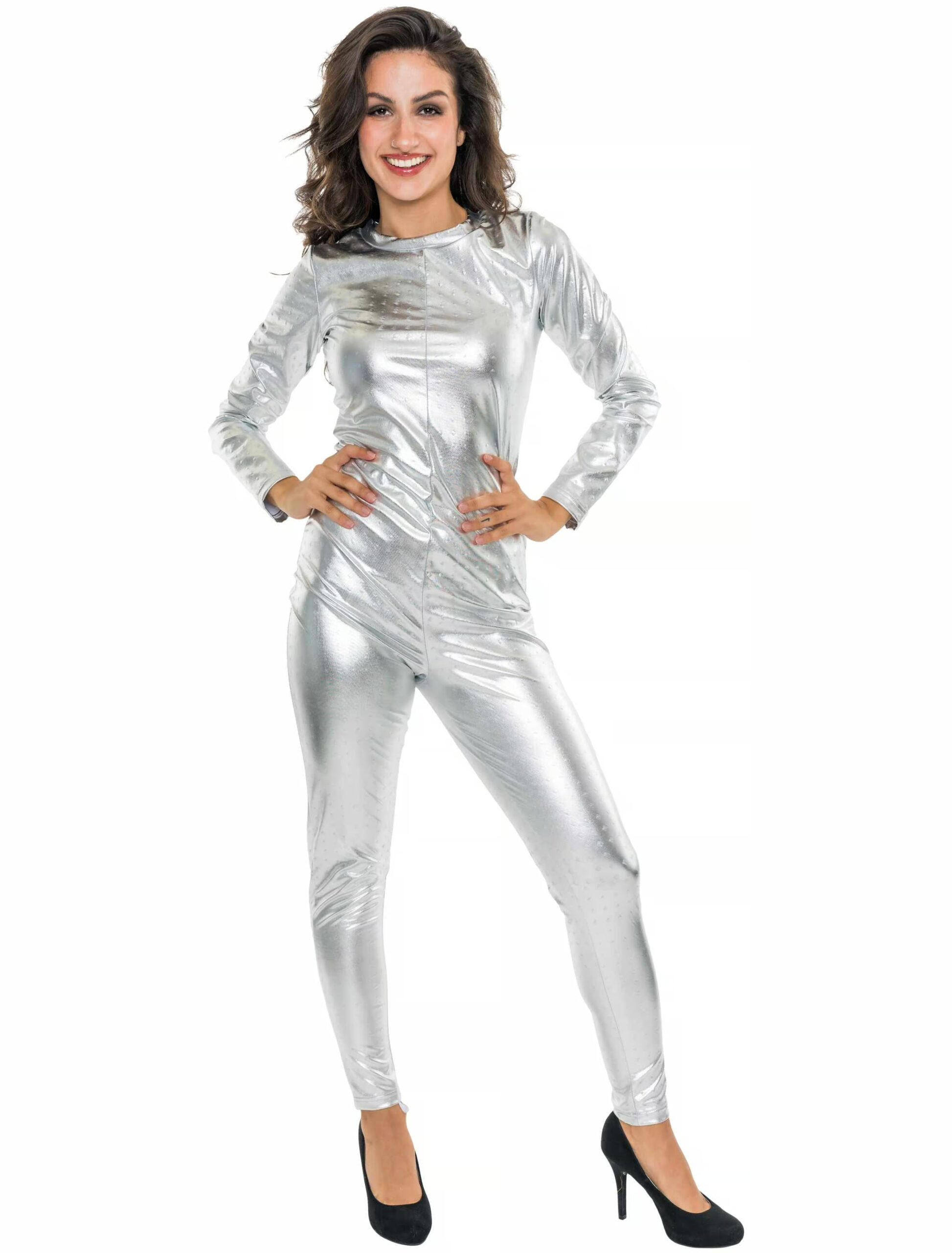 Mit unserem silbernen Damen Catsuit wirst du zum absoluten Hingucker – egal, ob du als intergalaktische Diva, futuristische Fashion-Ikone oder einfach nur als strahlender Star auf der Tanzfläche auftreten willst. Dieser hautenge Anzug schmiegt sich perfekt an deinen Körper und lässt dich glänzen wie der Abendstern persönlich. Die schimmernde silberne Oberfläche reflektiert jede Discokugel und jeden Scheinwerfer, sodass du dich wie ein wandelnder Lichtstrahl fühlst. Kombiniere den Look mit spacigen Accessoires, futuristischen High Heels oder einem frechen Make-up, das sogar Aliens beeindrucken würde – die Möglichkeiten sind endlos! Also, worauf wartest du? Werde zur Verkörperung von Stil, Eleganz und ein bisschen galaktischem Wahnsinn!