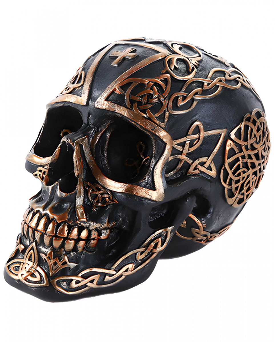 Kelten Totenkopf mit Kreuz und tribal Muster 17cm als mystische Deko Verschenke den golden verzierten schwarzen Totenschädel mit Keltenkreuz und Tribal Muster an einen Gothic Fan Du suchst ein Wohnaccessoire, das deine Liebe zur Gothic Deko und zum Tattoo Wohndesign widerspiegelt? Dann ist der Kelten Totenkopf mit Kreuz und tribal Muster die ideale Deko für dich! Der Schädel mit dem mystischen Look wird dich in seinen Bann ziehen. Der Kelten Totenkopf mit Kreuz und tribal Muster ist ca. 17 × 12 × 12 cm groß und aus hochwertigem Polyresin. Das Material ist robust, sodass du lange Freude an dieser Deko haben wirst. Der Totenkopf wird von Hand bemalt, wodurch jedes Stück ein Unikat ist. Lieferumfang: 1 x Kelten Totenkopf mit Kreuz und tribal Muster 17cm Farbe: Schwarz, Gold Größe: ca. 17 × 12 × 12 cm Material: Polyresin (Kunststein) Schwarzer Totenschädel mit klassischen Kelten-Muster Keltenkreuz und Goldfarbene Tribals als Verzierung Dekorativer Totenkopf als Wohnaccessoire und Geschenk Aus hochwertigem Polyresin gegossen Von Hand bemalt Der Artikel ist ein Gothic Deko Artikel und kein Spielzeug. Nicht für Kinder unter 3 Jahren geeignet. Kann Kleinteile enthalten, die verschluckt werden können – Erstickungsgefahr. Von Feuer und offenen Flammen fernhalten.