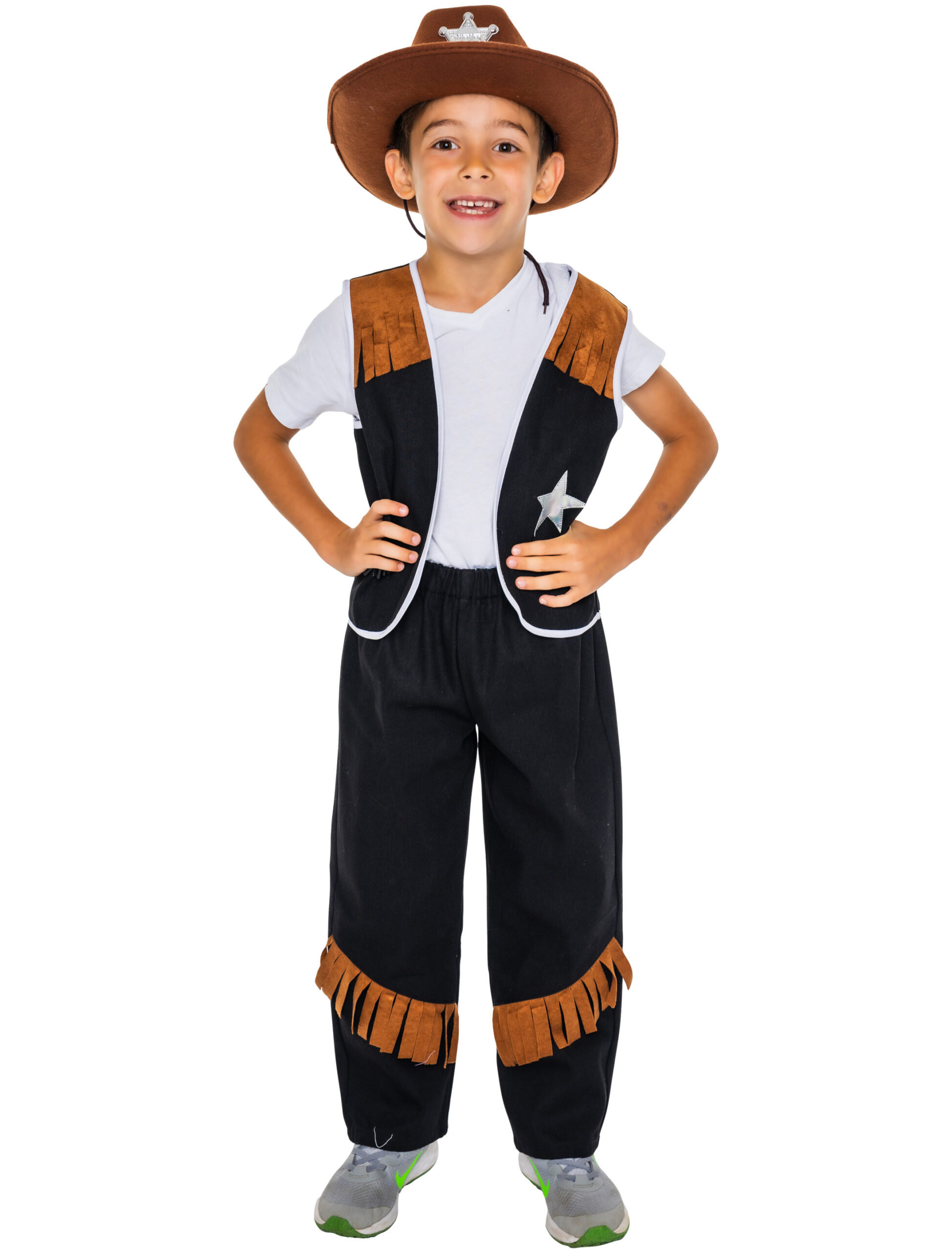 Lieferumfang: Weste, Hose; Material: schwarzer Stoff 100% Baumwolle, Rest 100% Polyester