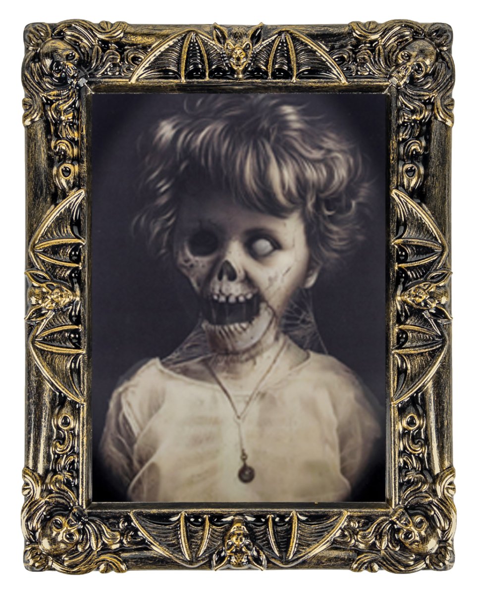 Creepy Little Abigail Hologram Portrait als Lenticular Wackelbild 50 x 39 cm Unheimliches Kinder Portrait mit Hologramm Effekt im antiken Bilderrahmen Das unheimliche Kinder Geisterbild mit Hologramm Effekt ist ein Muss für Halloween und Haunted House Party. Es ist ein gruseliger Hingucker, wenn das süße Mädchen sich in ein fieses Monster verwandelt. Das Creepy Little Abigail Hologram Portrait als Lenticular Wackelbild ist ein im antiken Rahmen eingefasstes Hologramm Portrait mit Geistermädchen. Es ist ca. 50 x 39 cm groß und passt somit ideal an jede Wand. Lieferumfang: 1 x Creepy Little Abigail Hologram Portrait als Lenticular Wackelbild 50x39cm Farbe: Schwarz, Gold, Beige, Braun Rahmengröße: ca. 50 x 39 cm Bildgröße: 37,5 x 26, 5 cm Material: Kunststoff Haunted House Grusel-Portrait eines Kindes Das Geistermädchen verändert sich beim Vorbeigehen in ein Monster Hologramm Portrait mit Geistermädchen Als Wackelbild Portrait für Haunted House Party Eindrucksvolle 50 x 39 cm groß, mit Möglichkeit zum Aufhängen auf der Rückseite Antiker Bilderrahmen und Hologram Portrait aus Kunststoff