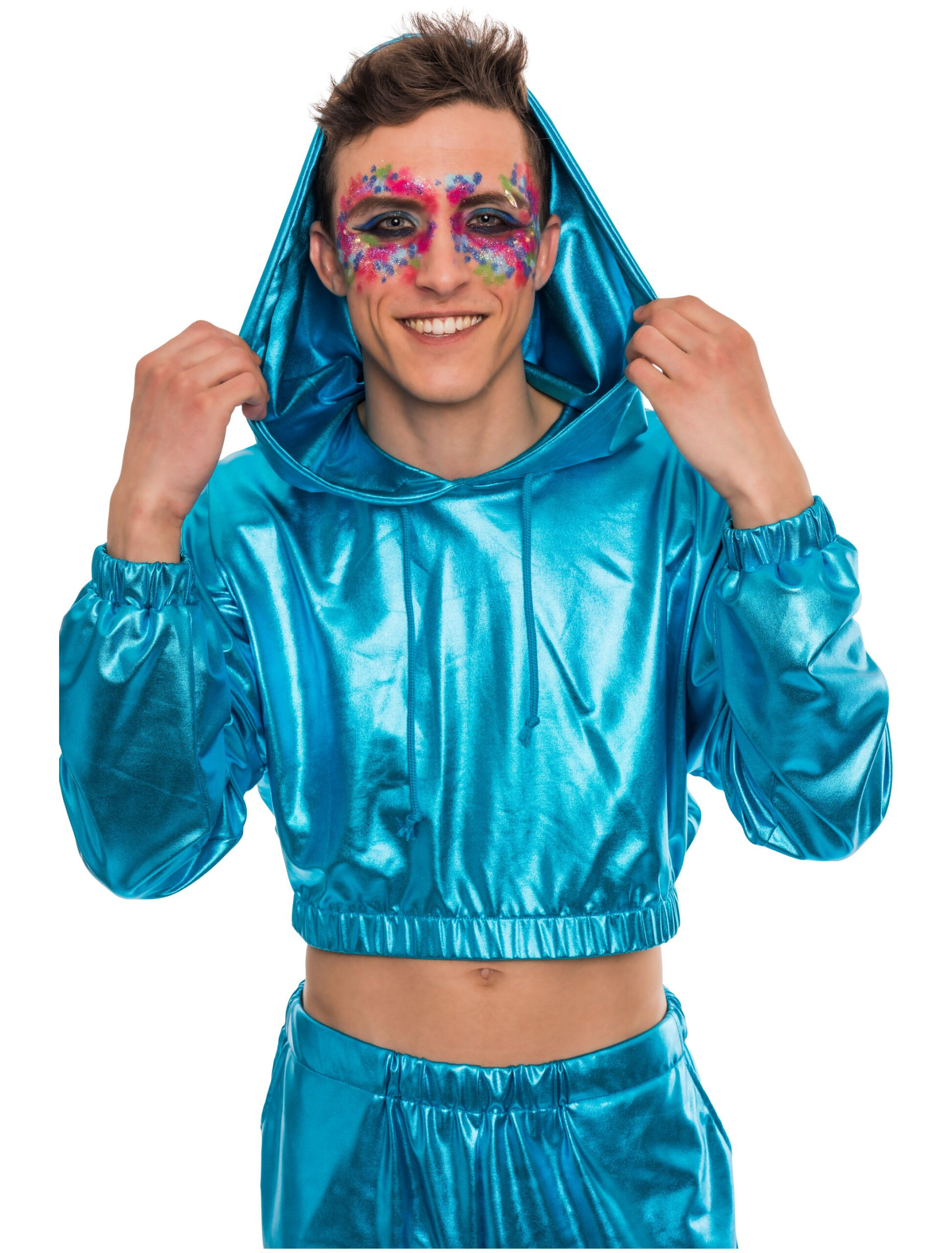 Cropped Hoodie metallic blau S/M, ideal für Karneval & Fasching