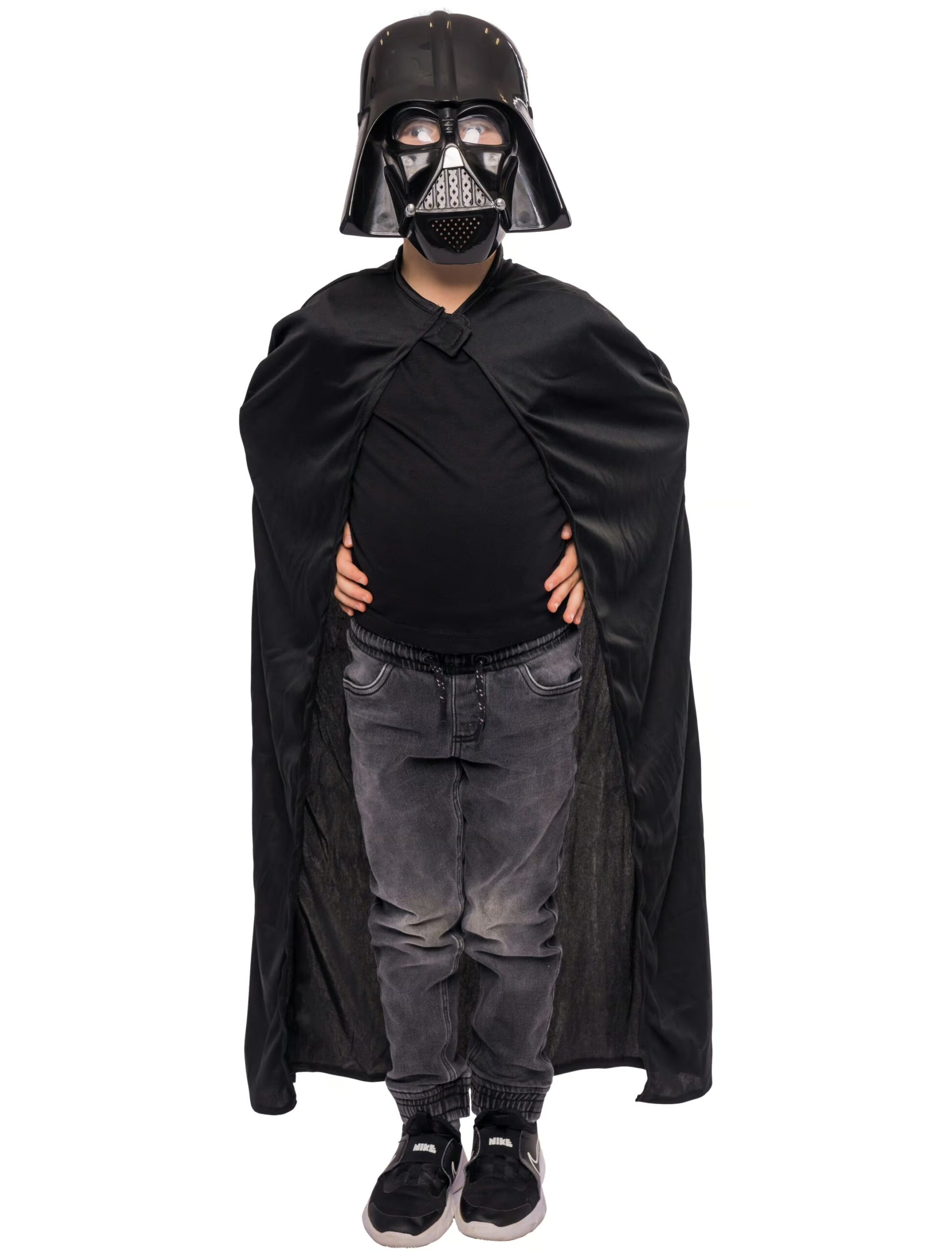 Mit unserem zweiteiligen Darth Vader Kostüm für Kinder schlüpfst du in die Rolle des wohl berühmtesten Bösewichts der Galaxis – perfekt für Karneval, Mottopartys oder Sci-Fi-Events. Das Set besteht aus einem schwarzen Cape und einer passenden Maske. Das Cape wird am Hals mit einem Klettverschluss geschlossen und sitzt so sicher, auch wenn es beim Spielen mal actionreicher zugeht. Gemeinsam ergeben die Teile den ikonischen Look, der sofort wiedererkennbar ist. Für alle Nachwuchs-Sith, die lieber auf der dunklen Seite feiern – und dabei eindrucksvoll auftreten wollen!