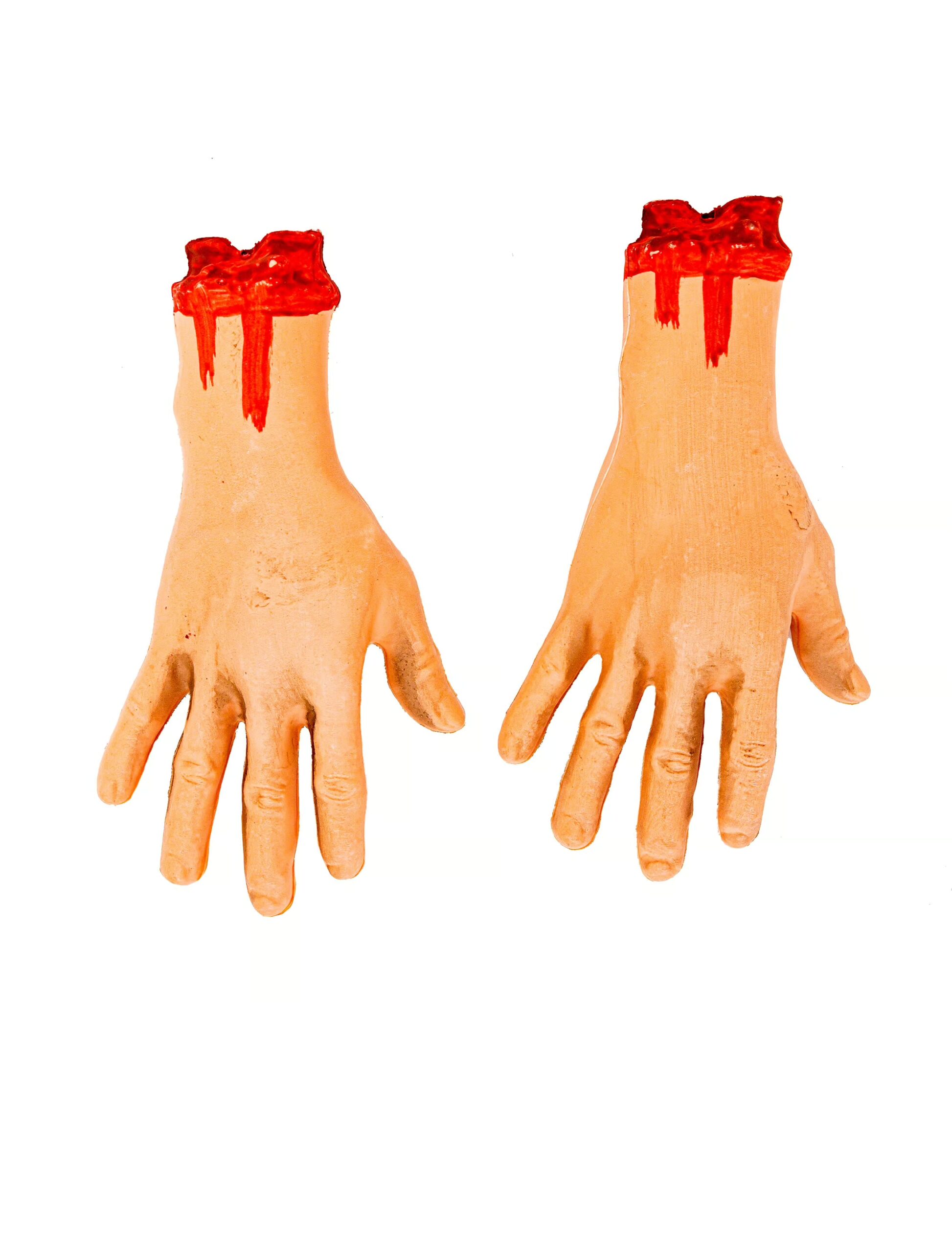 Es gibt Dekorartikel, die zwar nichts für schwache Nerven sind, dafür allerdings unverzichtbar für die nächste Halloween Party. Dazu zählen auch diese Deko Hände. Sie haben ab dem Handgelenk nur noch einen blutigen Stumpf und sehen durch die deutlich erkennbaren Gelenke und Fingernägel sehr realistisch aus. Für Fans des Horrors und Grusels ein perfektes Party-Accessoire.