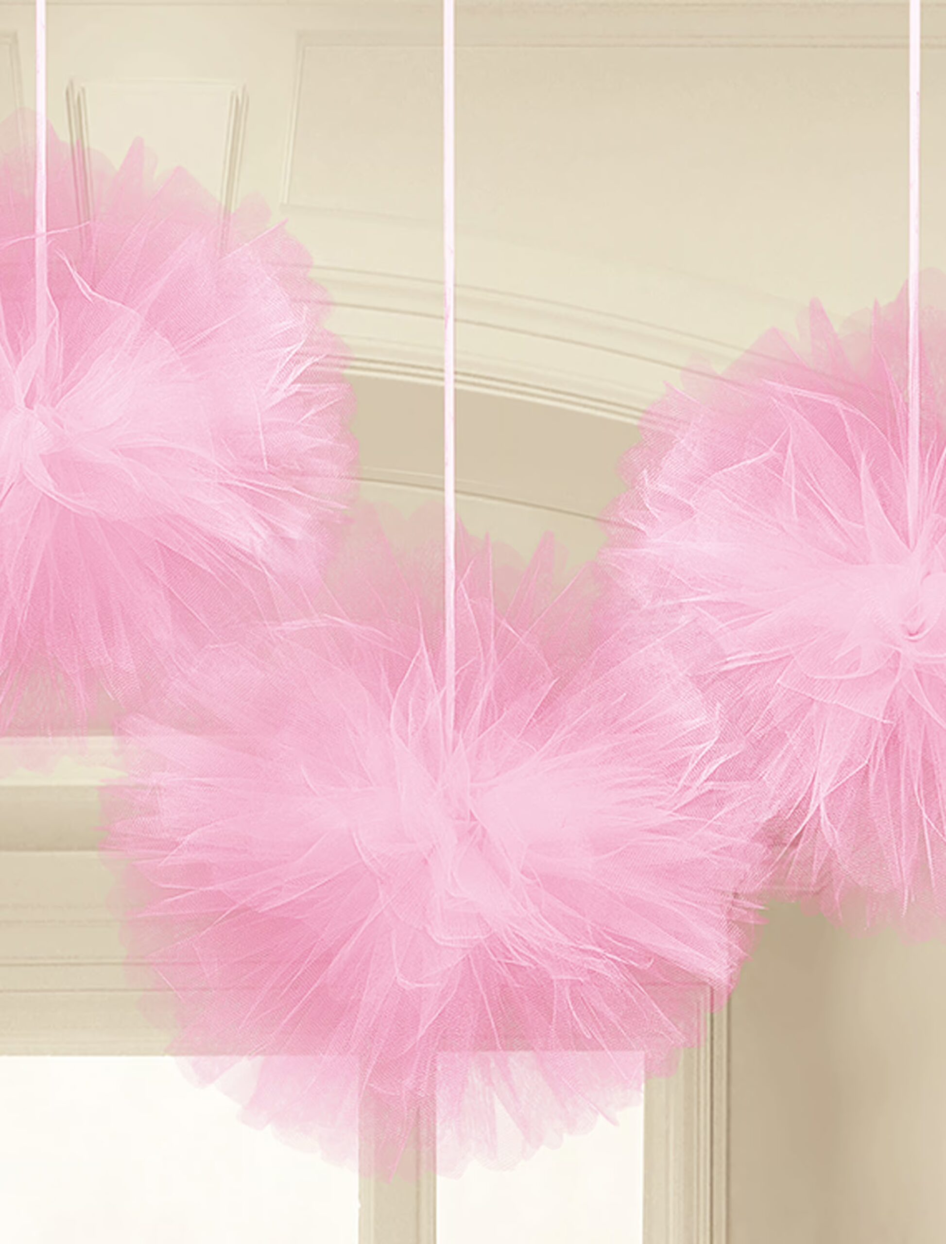 3 Dekobälle in Rosa aus Tüll. Die Dekobälle haben eine Größe von 30,4 cm. Perfekt geeignet für eine Prinzessinnen oder Babyshower-Party.