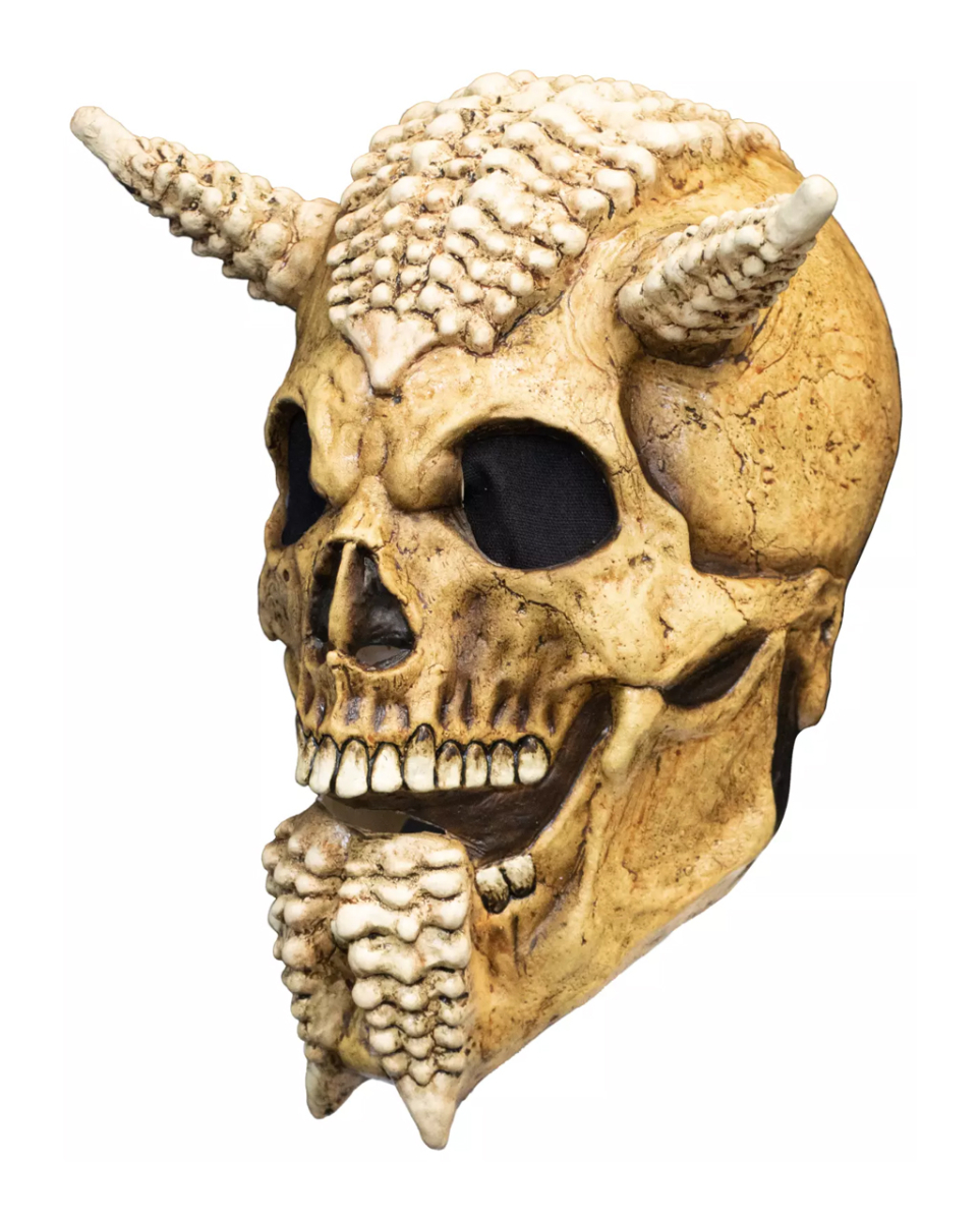 Dämonenschädel Maske mit Hörnern Eindrucksvolle Demon Skull Maske eines Totenschädels mit versteinerten Hörnern Hast Du jemals davon geträumt, auf der Halloween-Party für Aufsehen zu sorgen? Mit der Dämonenschädel Maske mit Hörnern wirst Du zum Mittelpunkt des Schreckens. Die Maske ist nicht nur ein Kostümzubehör – sie ist ein Portal in eine andere Existenz. Die Dämonenschädel Maske ist aus hochwertigem Latex und handbemalt. Sie zeigt einen antiken Totenschädel mit beeindruckenden, versteinerten Hörnern und markantem Kiefer. Die großzügig ausgeschnittenen Augenpartien sorgen für beste Sichtverhältnisse. Lieferumfang: 1 x Dämonenschädel Maske mit Hörnern Farbe: Beige, Braun, Weiß, Schwarz Größe: 3/4 Maske Material: Latex Einzigartige Demon Skull Maske eines Totenschädels mit versteinerten Hörnern Antik, rustikaler Totenkopf mit markantem Kiefer, schiefen Zähnen und kalkähnlicher Verhornung Coole Dämonenschädel Maske im Sci-Fi Style à la Westworld oder Mad Max Besitze jetzt die fantastisch aussehende 3/4 Maske als Verkleidungszubehör oder Deko Großzügig ausgeschnittene Augenpartie für gute Sichtverhältnisse des Trägers Aus hochwertigem Latex gefertigt und anschließend von Hand bemalt