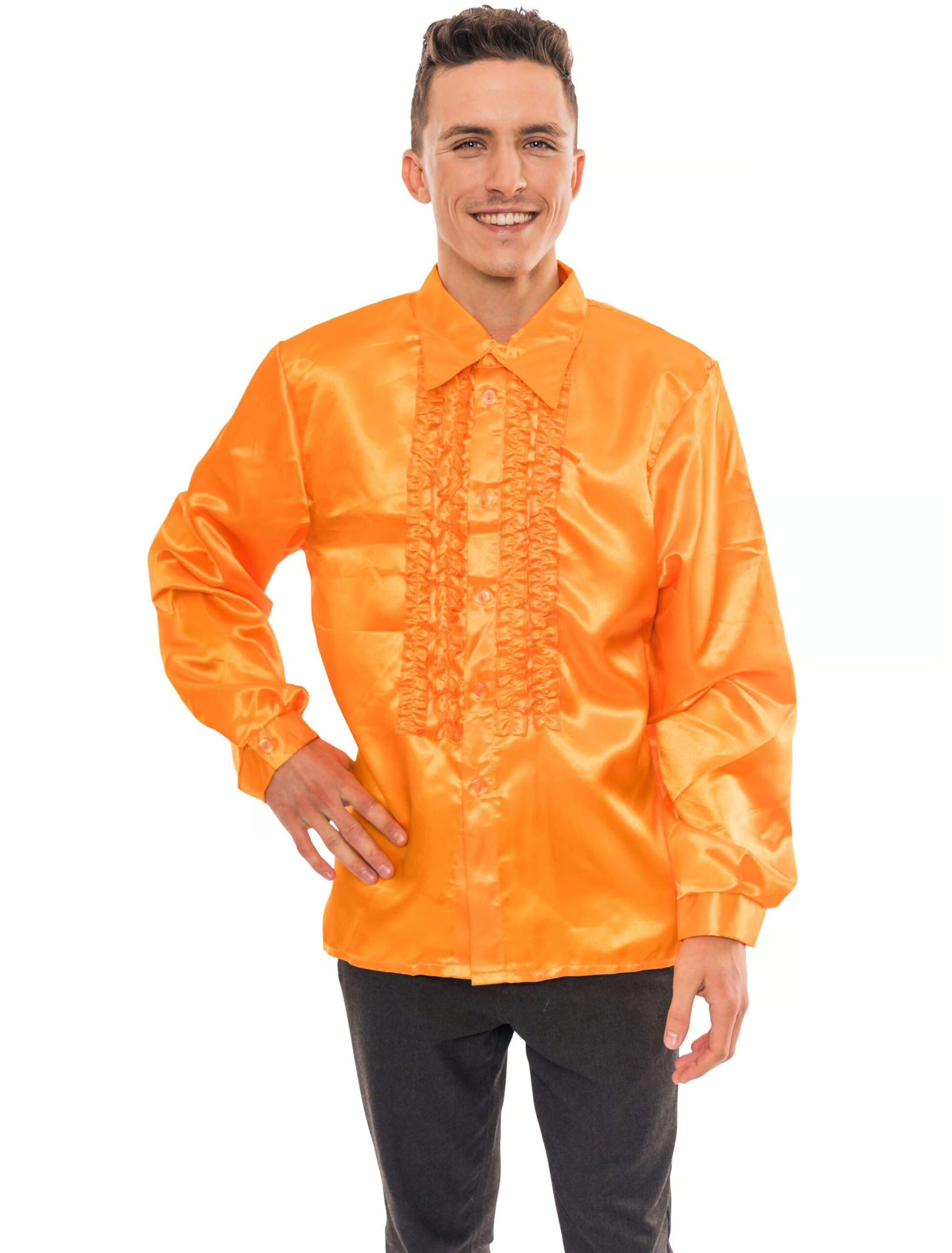 Discohemd Herren orange L, ideal für Karneval & Fasching
