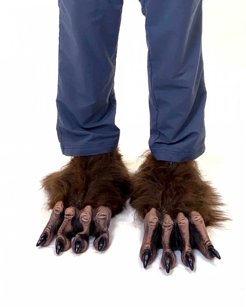 Dunkelbraune haarige Werwolf Füße als Schuhcover Pelzige Monster Schuhüberzieher mit zotteligem Werwolf Fell Hol dir dunkelbraune haarige Werwolf Füße als Schuhcover! Passend zu deinem Halloween Kostüm verwandeln dich die Kunstfellpranken in eine unheimliche Kreatur der Nacht. Dunkelbraune haarige Werwolf Füße als Schuhcover sind aus hochwertigem Naturlatex auf der Vorderseite und weichem synthetischem Kunstpelz auf der Rückseite gefertigt. Sie können über allen herkömmlichen Schuhen getragen werden. Lieferumfang: 1 x Dunkelbraune haarige Werwolf Füße als Schuhcover Inhalt: 2 Stück Farbe: Dunkelbraun, Hautfarben, Schwarz Größe: One Size -passt über die meisten Schuhe Material: Latex, Kunstfell Pelzige Werwolf-Füße als Kostümaccessoire Üppige Behaarung und Krallen Wie Gamaschen über den Schuhen tragen Auf der Vorderseite aus Naturlatex und auf Rückseite aus synthetischem Kunstpelz hergestellt Kunstfell Kostümzubehör für Halloween, Fasching und Karneval In Handarbeit in den USA hergestellt