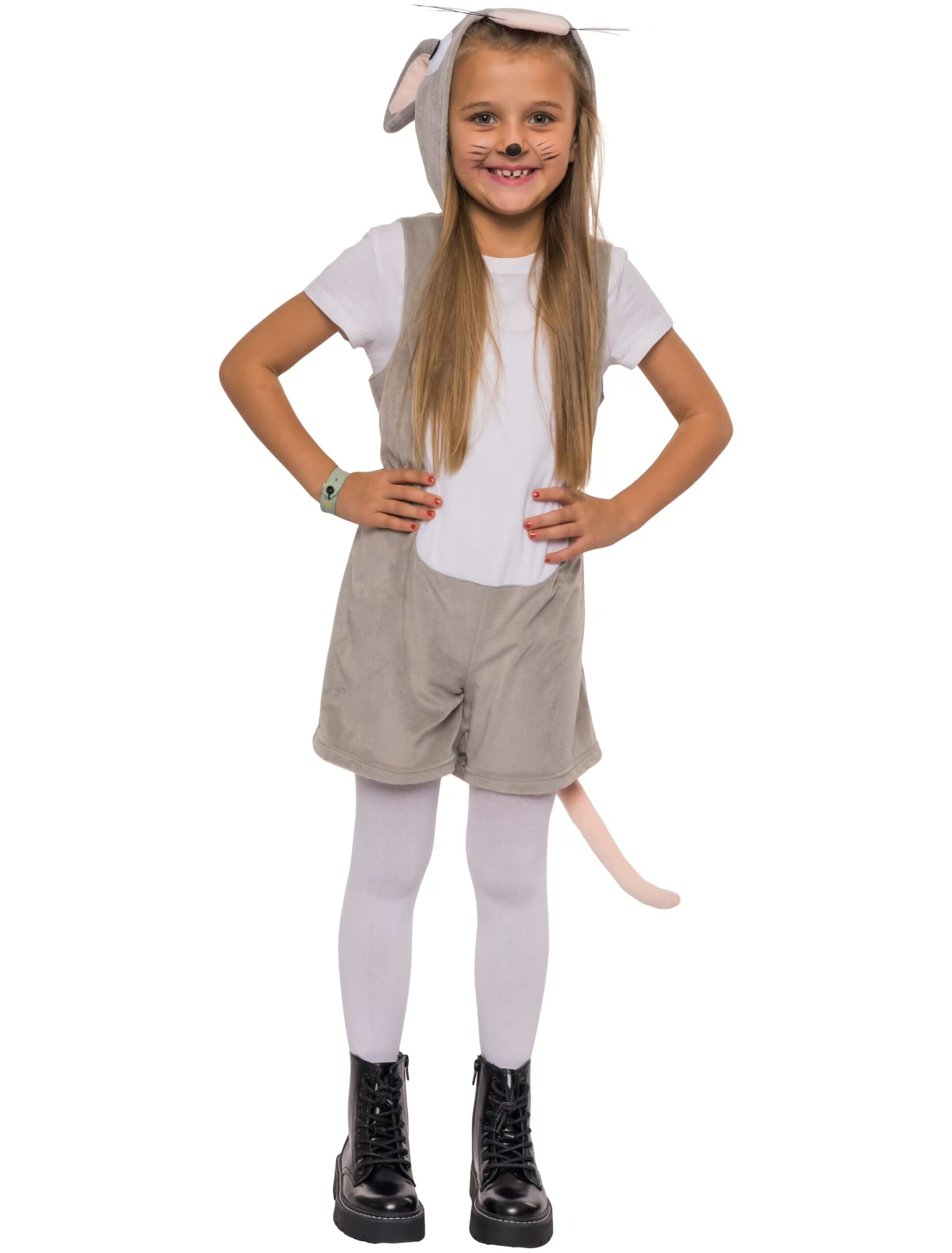 Einteiler Maus Kinder grau 134-140, ideal für Karneval & Fasching