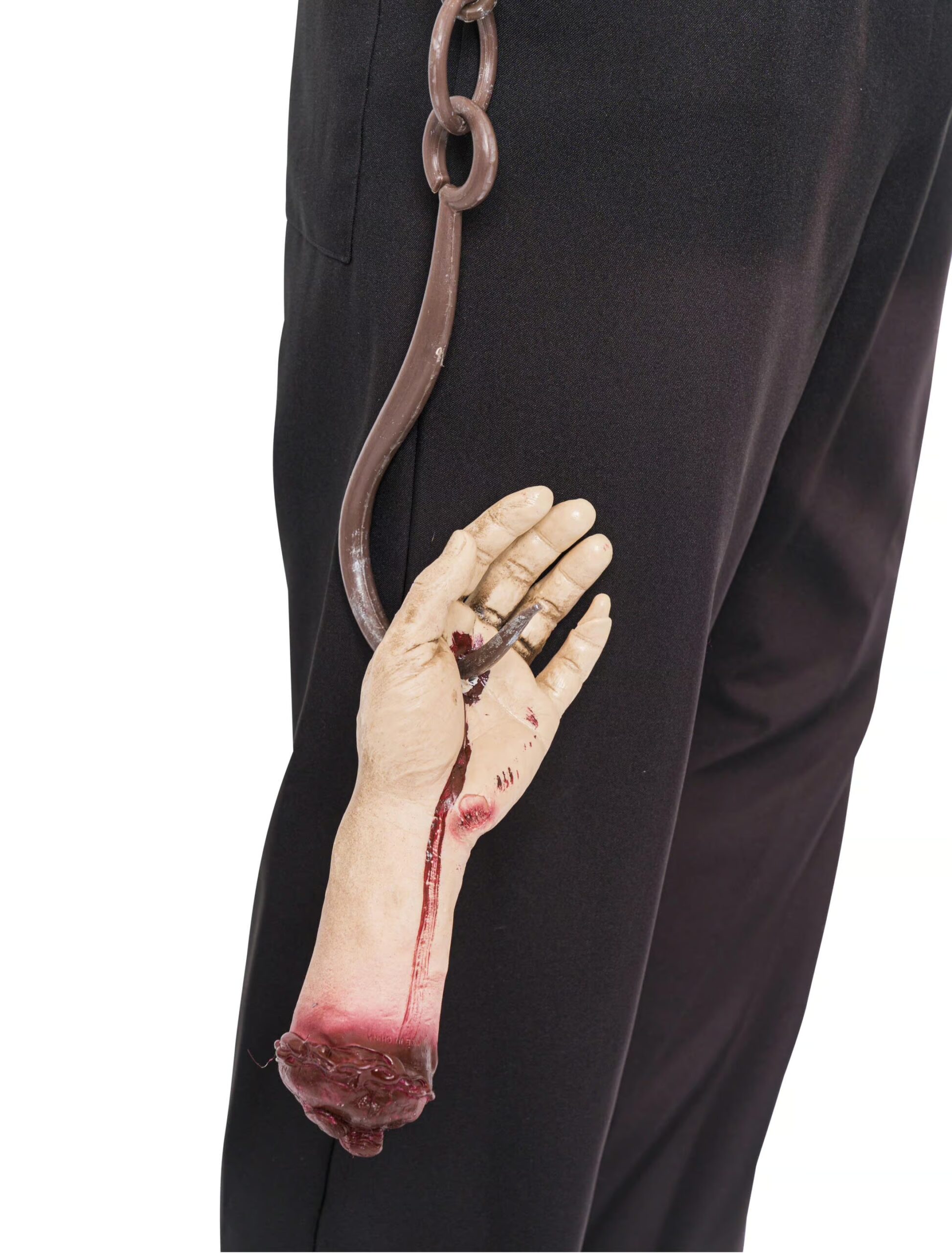 Das beste Halloween Accessoire, das Du je gesehen hast: An einem Eisenhaken, der an einer Kette befestigt ist, baumelt eine verblüffend echt aussehende abgerissene Hand. Damit erschreckst Du garantiert jeden noch so hart gesottenen Halloween Besucher. Haken und Kette messen 50 Zentimeter, die Hand ist 22 Zentimeter groß. Ein blutiger Spaß, mit dem Du Eindruck schindest und den garantiert so schnell niemand vergisst.