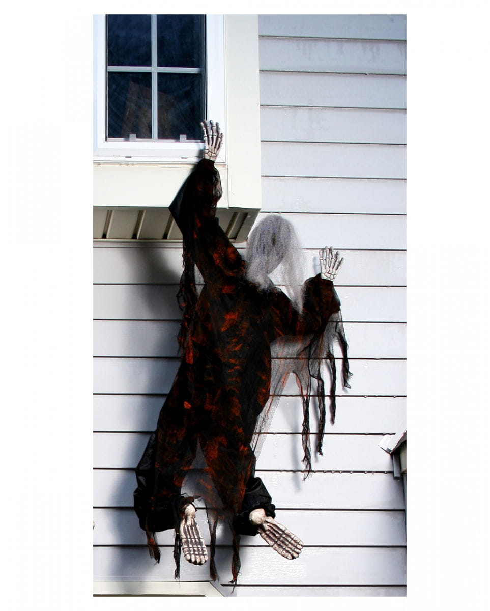 Fassadenkletter Skelett schwarz 152 cm als lustige Halloween Dekofigur für Hauswand und Fensterbank Bestell dir jetzt das kletternde Knochengerippe für Halloween! Mach besser schnell das Fenster zu, den unser schwarzes Fassadekletter Skelett ist schon auf dem Weg nach oben – die perfekte Dekofigur für deine nächste Halloween-Party! Das schwarze Fassadenkletter Skelett mit der blutbespritzen Kleidung sowie den grauen dünnen Haaren auf seinem Totenschädel besitzt Befestigungshaken an den Händen und lässt sich so ideal an der gewünschten Hauswand dekorieren. Lieferumfang: 1 x Fassadenkletter Skelett schwarz 152 cm Farbe: Schwarz/Rot/Beige Größe: ca. 152 cm Material: Polyester, Kunststoff, Metall, Kunsthaar Ideal für die Fassaden und Fensterdekoration Für den Außen und Innenbereich geeignet Ohne Bewegung und ohne Beleuchtung Der Artikel ist eine Deko für Erwachsene und kein Spielzeug. Nicht für Kinder unter 3 Jahren geeignet. Kann Kleinteile enthalten, die verschluckt werden können – Erstickungsgefahr. Von Feuer und offenen Flammen fernhalten.