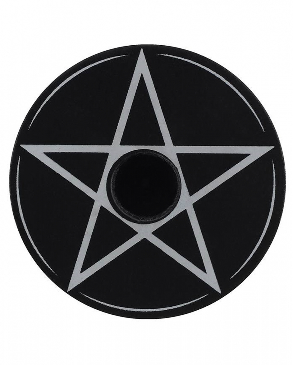 Schwarzer Kerzenhalter mit Pentagramm Motiv Gothic Kerzenständer mit Pentagramm für alternative Wohn-Styles Unser schwarzer Kerzenhalter mit Pentagramm Motiv ist nicht nur an Halloween ein dekorativer Blickfang. Auch für deinen kleinen Haus-Altar macht sich der Pagan Kerzenhalter ganz hervorragend. Du bekommst einen schwarzen Kerzenhalter mit Pentagramm Motiv als okkulte Pagan Deko für Wohn- und Geschäftsbereich. Der Pentagramm Kerzenständer ist aus Kunststein gefertigt und sehr flach! Lieferumfang: 1 x Schwarzer Kerzenhalter mit Pentagramm Motiv Farbe: Schwarz, Silber Größe: ca. 5 x 5 x 1,5 cm Material: Polyresin (Kunststein) Kleiner Kerzenhalter mit Pentagramm als Motiv Perfekt für unsere kleinen Zauberkerzen Gothic-Wohnaccessoire für den Hausaltar Mitbringsel und Geschenk für Wicca und Pagan Fans Der Artikel ist ein Wohnaccessoire. Nicht für Kinder unter 3 Jahren geeignet. Kann Kleinteile enthalten, die verschluckt werden können – Erstickungsgefahr. Von Feuer und offenen Flammen fernhalten.