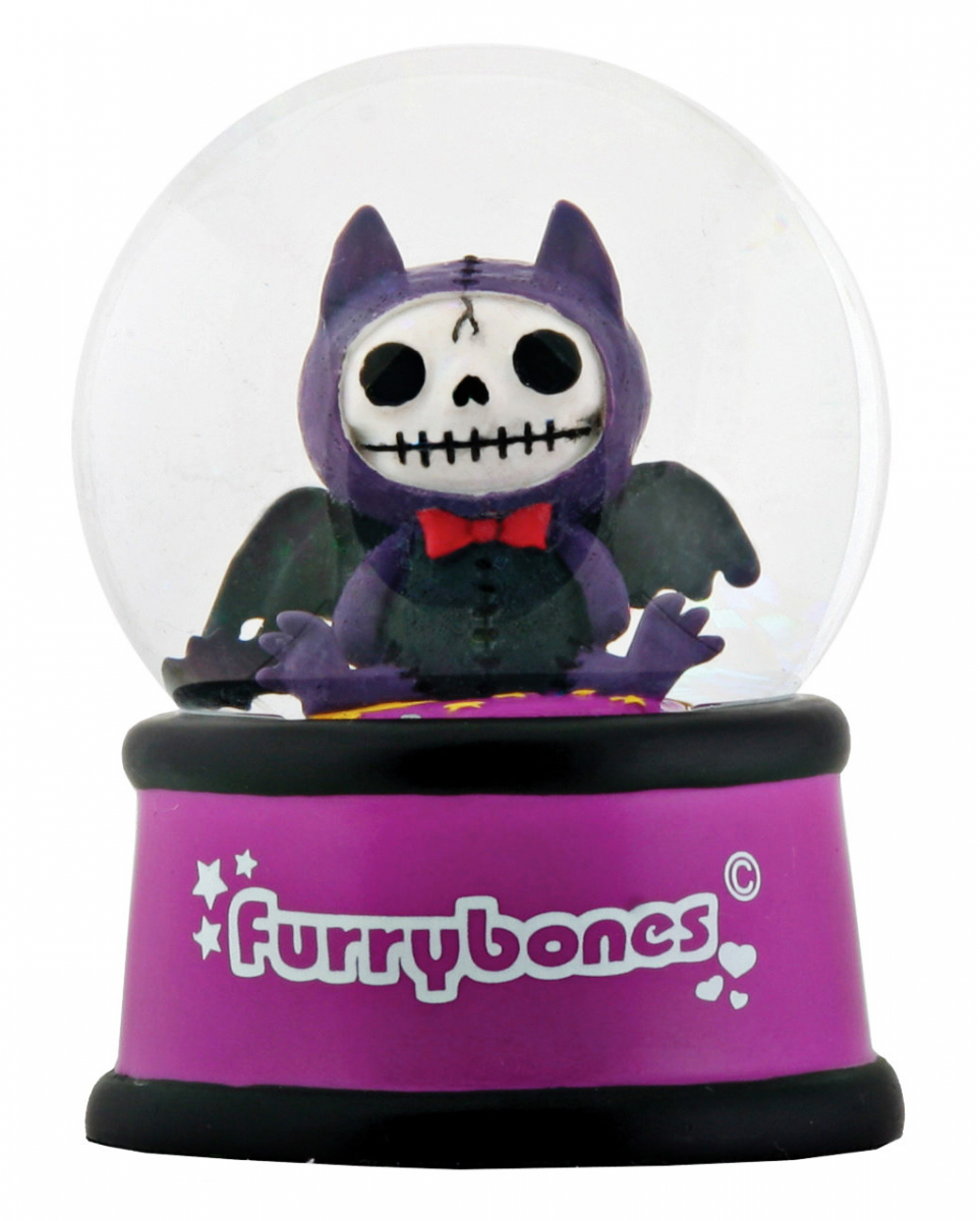 Furrybones Schneekugel Flappy als Geschenkartikel Magische Gothic Dekofigur mit Furrybones Fledermaus Inmitten auf einer Wiese sitzt unser süßer Flappy Furrybones. Plötzlich beginnt es zu schneien, und der süßen Fledermaus wird klar, dass sie sich in einer magischen Gothic Schneekugel befindet. Der Sockel unserer Furrybones Schneekugel besteht aus Kunststein und zeigt die Aufschrift ",Furrybones",. In der Kugel sitzt eine putzige Fledermausfigur mit Skelettgesicht, die sich schon darauf freut, dich kennenzulernen. Lieferumfang: 1 x Furrybones Schneekugel Flappy als Geschenkartikel Farbe: Violett, Schwarz, Weiß Größe: ca. 9 x 5 x 5 cm Gewicht: 400 g Material: Polyresin (Kunststein), Glas Niedliche Furrybones Sammelfigur als ",Schneekugel", Skelettfigur im Fledermauskostüm als Water Globe Liebenswerter Deko und Geschenkartikel für Furrybones Fans Der Artikel ist ein Dekoartikel. Nicht für Kinder unter 3 Jahren geeignet. Kann Kleinteile enthalten, die verschluckt werden können – Erstickungsgefahr. Von Feuer und offenen Flammen fernhalten.
