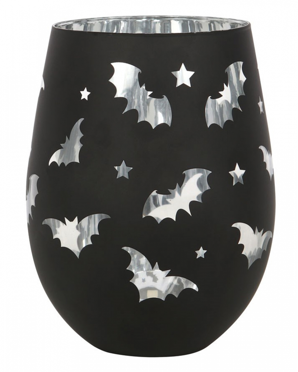 Fledermaus Weinglas ohne Stiel 500 ml Außergewöhnliches Gothic Weinglas ohne Stiel mit Fledermaus Design Trinke jetzt deinen blutroten Wein aus dem dazu passenden Weinglas mit Fledermaus Motiv. Das stiellose Gothic Weinglas ist geradezu perfekt für alle Wesen der Nacht. Unser Design zeigt viele silberfarben hinterlegte Fledermäuse und Sterne auf matt schwarzem Hintergrund. Das außergewöhnliche Fledermaus-Weinglas ist die perfekte Ergänzung für jede Halloween-Hausbar. Reichlich verziert mit Fledermäusen erfreut sich das Weinglas bei Gothic Fans, genauso wie bei Hexen und Magiern. Mit einem Fassungsvermögen von jeweils ca. 500 ml ist das Weinglas groß genug, um auch Cola-Rotwein zu servieren. Um das schöne Design zu schonen, bitte nur von Hand waschen und nicht in die Mikrowelle stellen. Lieferumfang: 1 x Fledermaus Weinglas ohne Stiel 500 ml Farbe: Schwarz, Silber Größe: ca. 12 x 9 x 9 cm Material: Glas Fassungsvermögen jeweils 500 ml Nur von Hand waschen Nicht für die Mikrowelle geeignet
