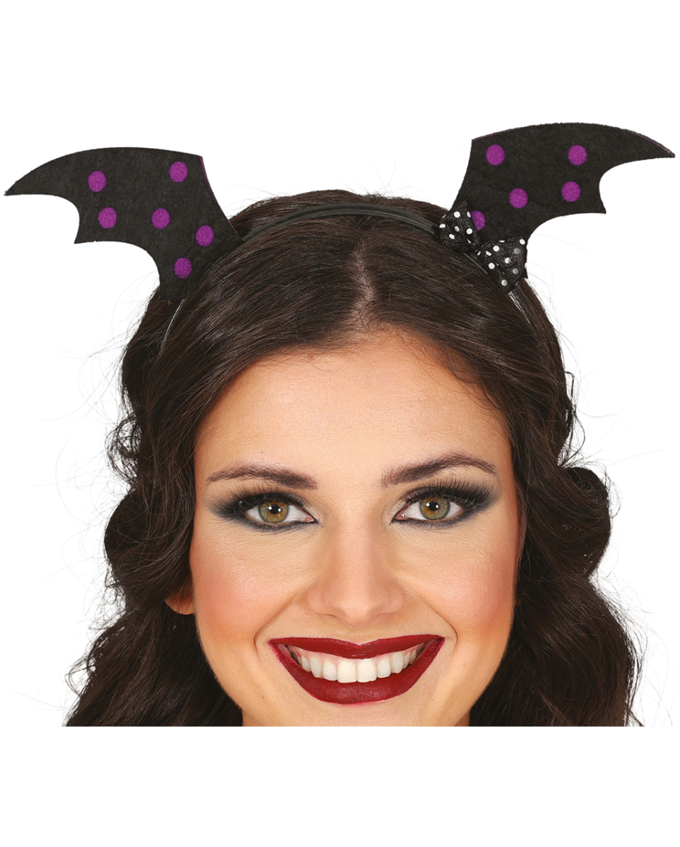 Fledermausflügel Haarreif als Kostümzubehör Haarschmuck mit gepunkteten Fledermausflügeln Verwandle dich in eine Gruselgestalt! Der Fledermausflügel Haarreif als Kostümzubehör ist ein Accessoire, das dich an Halloween und Fasching in eine zuckersüße Fledermaus verwandelt. Unser Fledermausflügel Haarreif als Kostümzubehör besteht aus Kunststoff, Filz und Polyester. Eine kleine Schleife ist an einem der Flügel angebracht, was für einen charmanten Look sorgt. Lieferumfang: 1 x Haarreif mit Fledermausflügel Farbe: Schwarz, Lila, Weiß Größe: One Size Material: Kunststoff, Filz, Polyester Kleines Schleifchen am Flügel Schwarz-Lila Fledermaus Kostümzubehör Fledermaus-Flügel aus Filz als Haarschmuck Schnelle Verkleidung