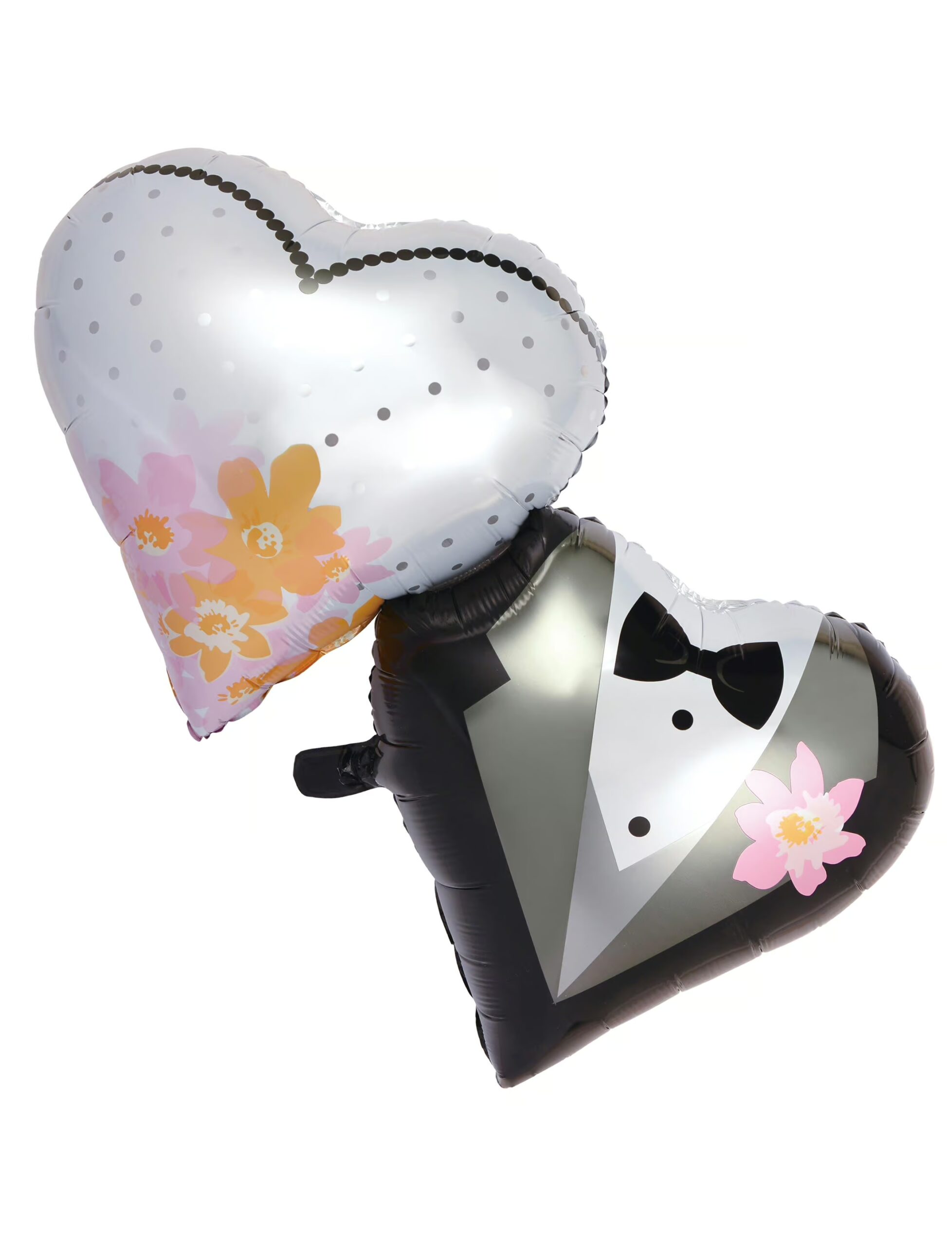 Ein Ballon, aber zwei Herzen! Diese beiden hübschen Brautpaar-Herzen sind das ideale Geschenk für jedes frisch vermählte Paar. Der eine Luftballon ist weiß und mit süßen Pünktchen und bunten Blumen verziert, während der andere mit einem edlen Herren Hochzeitsanzug bedruckt ist. Mit einer Ballon Gas Flasche kannst Du diesen und weitere Ballons bequem selbst mit Helium füllen.