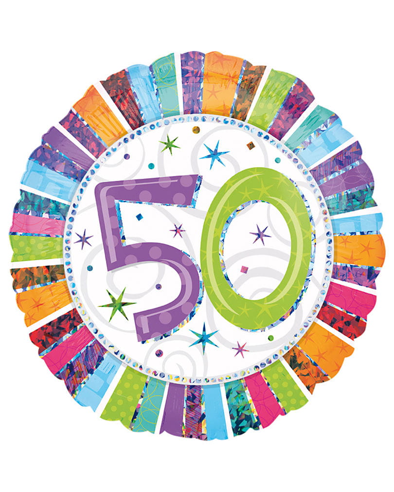 Folienballon 50 Damit der 50. Geburtstag ein unvergesslicher Freudentag wird und das besondere Flair bekommt! Der Folienballon Radiant 50 besteht aus einer Polyethylenfolie auf welche eine Aluminiumfolie mit dem Motiv aufgedampft wurde. Lieferumfang: 1x Folienballon Radiant 50 Farben: Regenbogen Durchmesser: ca. 45 cm Material: Polyethylen und Aluminium Der Folienballon wird unbefüllt versendet Der Folienballon kann mit Helium oder Luft befüllt werdenAchtung: Nicht für Kinder unter 3 Jahren geeignet, da Kleinteile verschluckt werden können. Der Luftballon mit Zeichentrick Motiv wird unbefüllt versendet und kann später von dir mit Helium oder Luft befüllt werden.