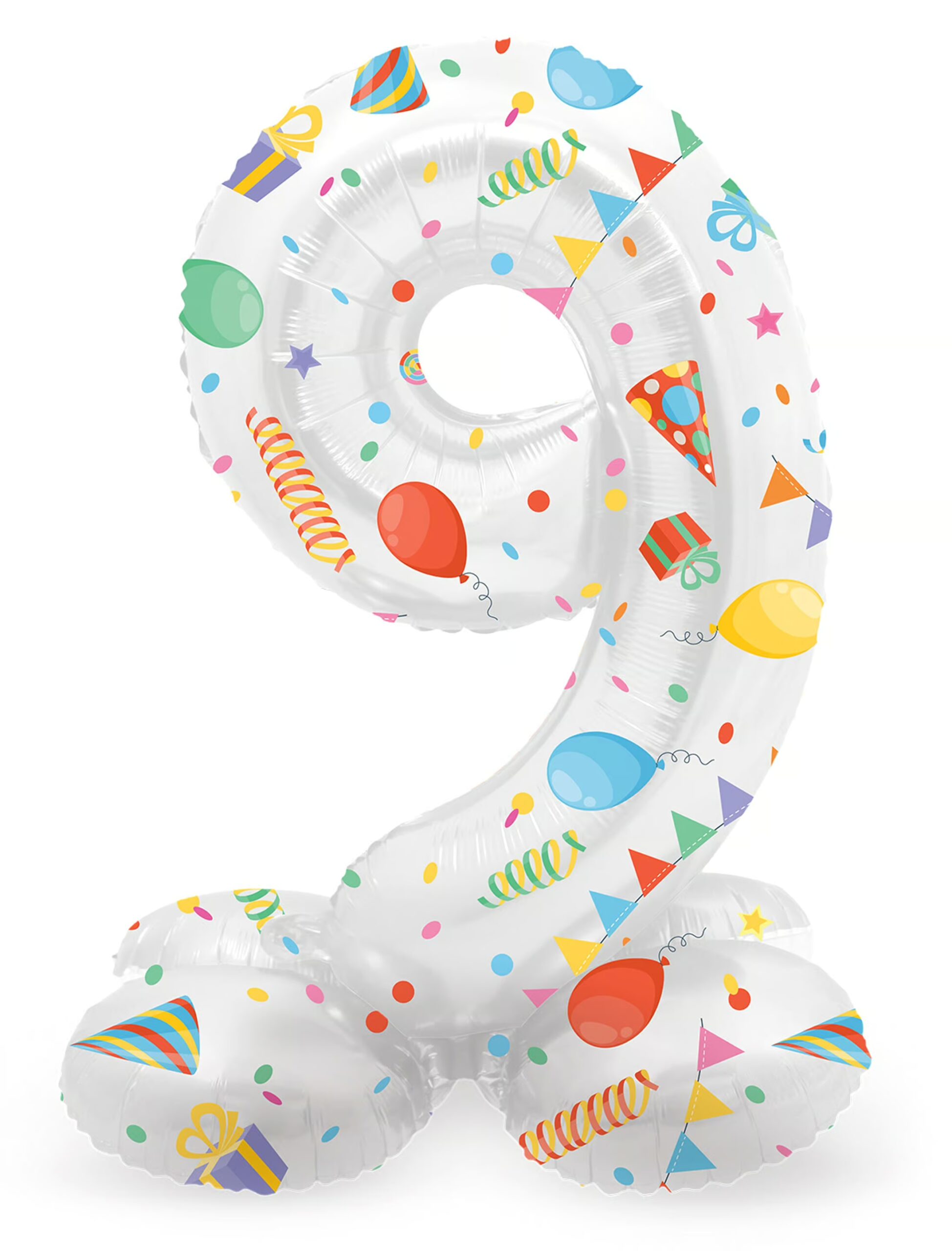 Folienballon stehend Party Zahl 9 Farbe: bunt