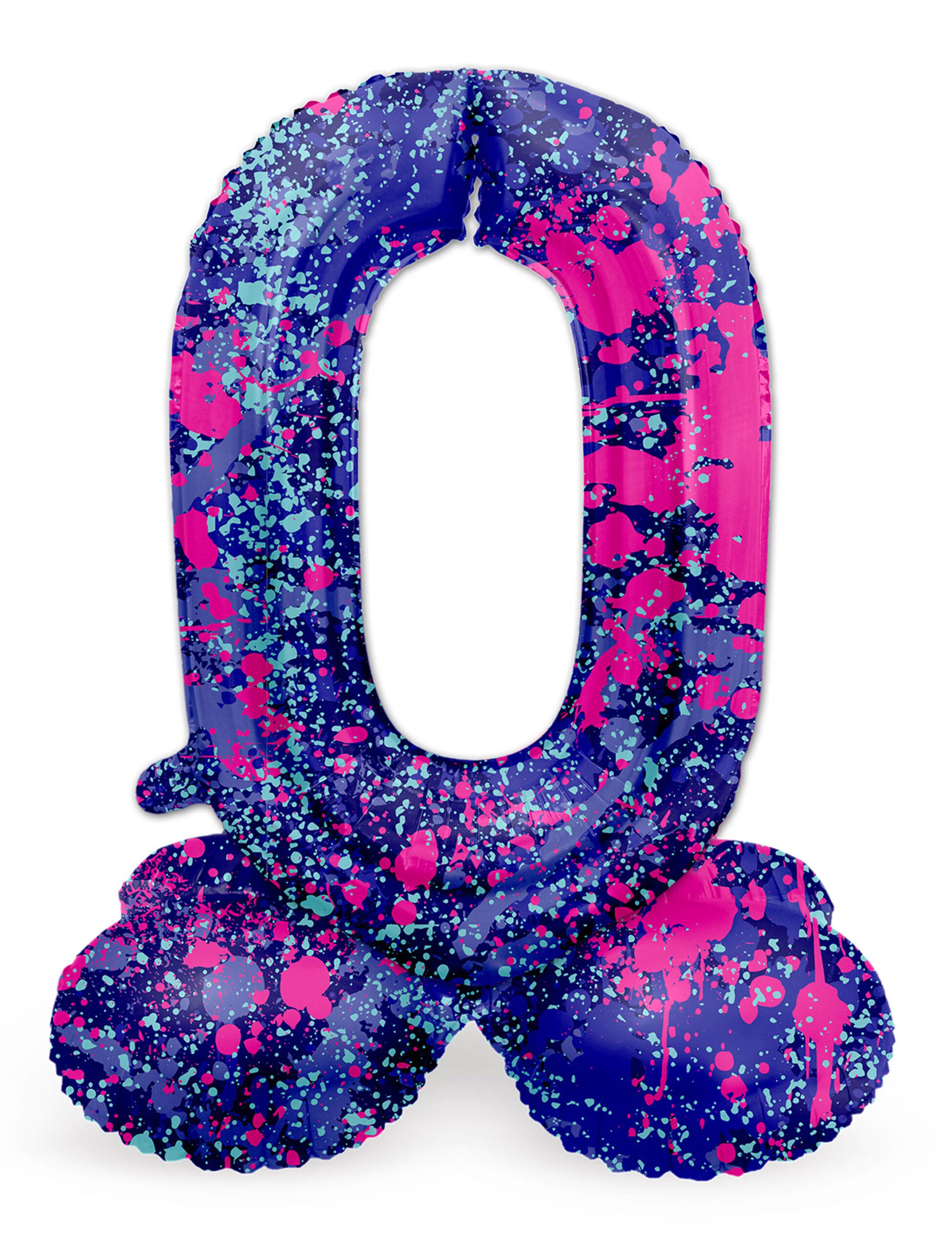 Folienballon stehend Splash Zahl 0, ideal für Karneval & Fasching