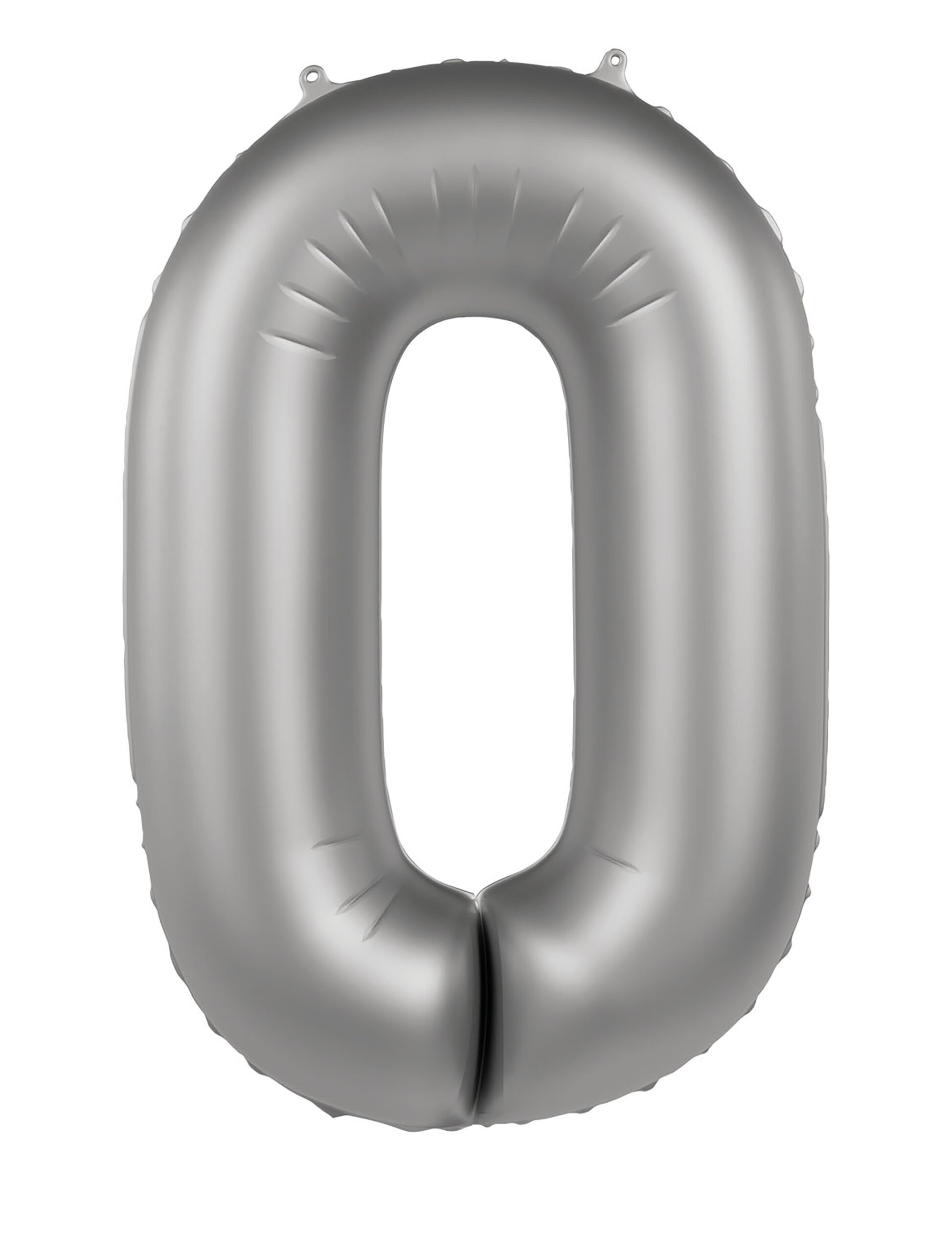 Folienballon Zahl 0 L matt silber, ideal für Geburtstag / Jubiläum